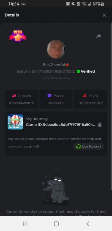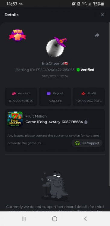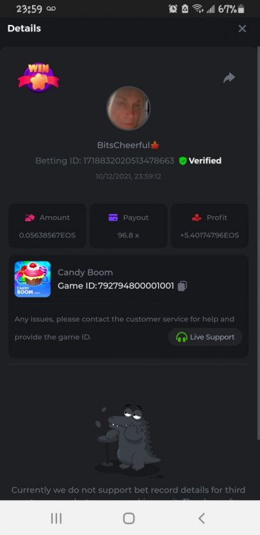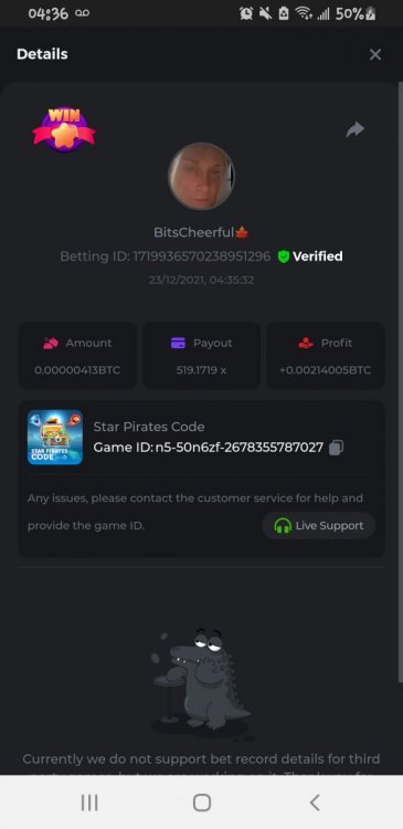IS THIS CLOSE ENOUGH FOR THE X50 SPECIAL BONUS??? ID# 19043223565593887 X49.30 and for the highest multiplier heres what I got Betting ID: 19043223565594420 X96.3