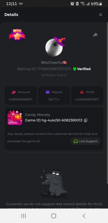 FRUIT MILLION Betting ID: 1715249248472685063 X1920.63 SPIN AND SPELL Betting ID: 1714873963700498439 X30.5 CANDY MONSTA Betting ID: 1715250358712171271 X162.77 LUCKY DAMA MUERTA Betting ID: 1715293547172811527 X485.39