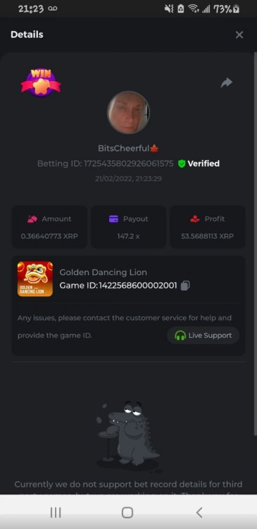 SOLARQUEEN Betting ID: 1725442757969684999 X161.35 TIGER JUNGLE Betting ID: 1725446926384256007 X58 GOLDEN DANCING LION Betting ID: 1725435802926061575 X147.2 -