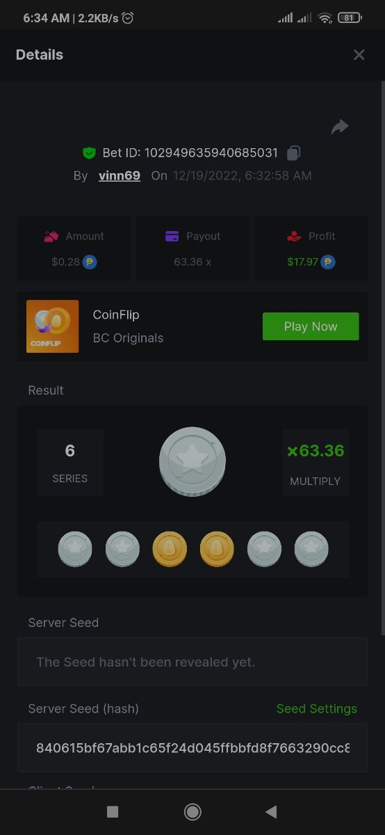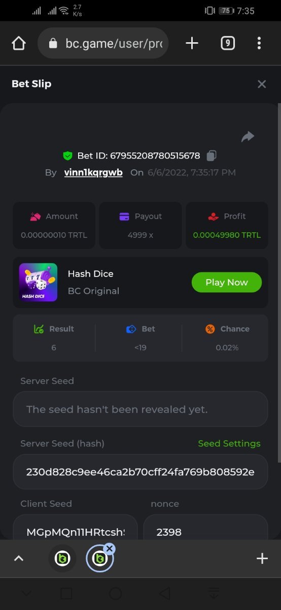 • Favorite Game Hash Dice