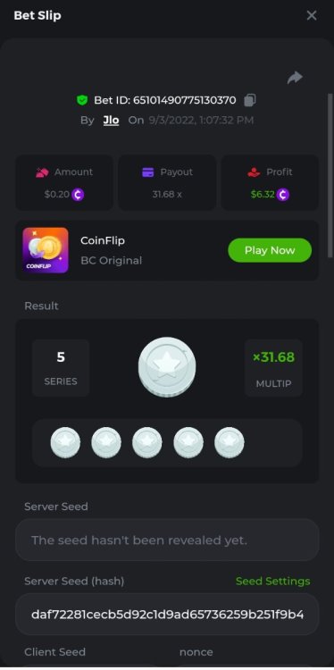 3. Whew!!! This is a hard one lose my 46$ trying to complete 4 payouts. 11x,17x,26x,30x= total of 4 payouts 1. 26x https://bc.game/sd/?sd=10SSP0EYQ9DYQB 2. 11x https://bc.game/sd/?sd=10SSQ8X6OJOY6R 3. 30x https://bc.game/sd/?sd=10SSRLOQYRS45V 4.17x https://bc.game/sd/?sd=10SSUT3WSEBEAB