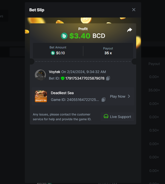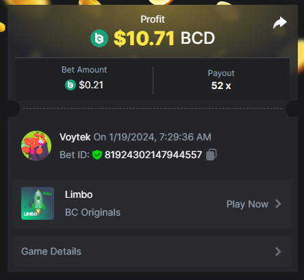 4. 1st 29X - https://bc.game/#/sd/11NFONDX0WZ167 2nd 27X - https://bc.game/#/sd/11NFOW1TM6TE43 3rd 37X - https://bc.game/#/sd/11NFOZW2AQMX0Z