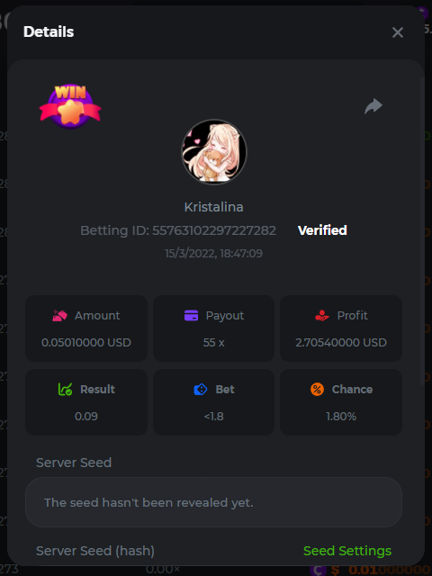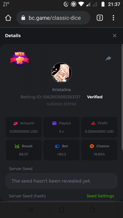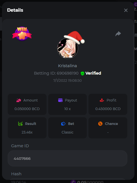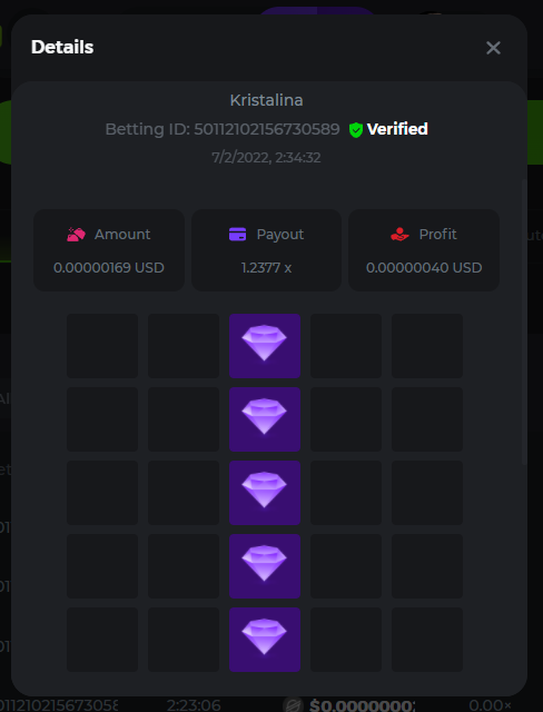 3. Game: Mines Hunt: I BCGAME Description: Set the game with 2 mines, and spell I BCGAME, letter by letter as shown in the example: Bets must be placed in that exact order, all in a row without busting. Only winning bets are valid. Minimum bet size: $0,05 USD or equivalent. All bets must have the same bet amount. Elegible coins: All coins are elegible, except for JBs. Payout : The highest bet amout wins. To enter, post your bets in the following format, with view in USD mode enabled: Betting ID: 50112102156730589