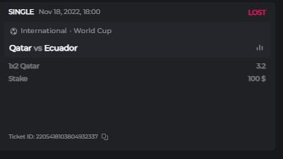 7. Bet ID - 2212656365359477238 I still think this was a unfair loss seeing as the Netherlands scored after the 90 minutes! But what ever it is what it is