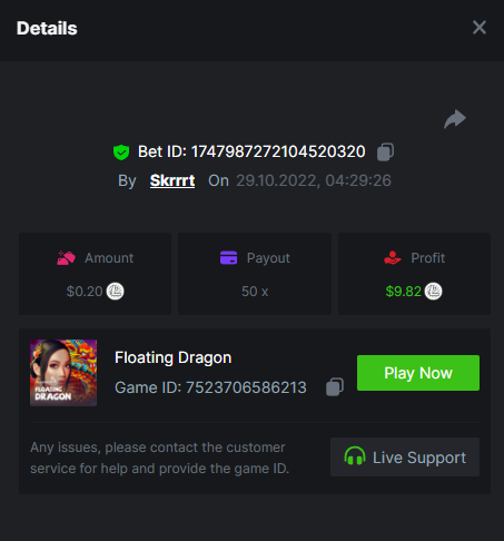 1. BOUNTY Floating Dragon https://bc.game/#/sd/10W1E9VZ4Q6Z9V