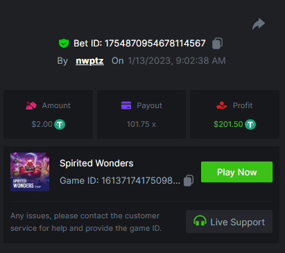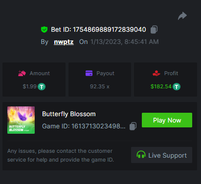 Bet ID: https://bc.game/#/sd/1119PMTXCPKV0Z