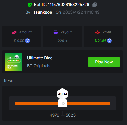 5. 16 / 18 15x : https://bc.game/#/sd/118GFIGCQ60F0Z 25x : https://bc.game/#/sd/118307NZG7BIMR 33x : https://bc.game/#/sd/118308U5XWPFDF 44x : https://bc.game/#/sd/118309S5Q2DO9F 55x : https://bc.game/#/sd/11830ANG3RKNBN 75x : https://bc.game/#/sd/11830BI9MIGDG3 99x : https://bc.game/#/sd/11830C9OB6KFTF 150x : https://bc.game/#/sd/11830EG1HKO3YR 220x : https://bc.game/#/sd/11830FDHYC52XF 300x : https://bc.game/#/sd/118E1FGYISFGUR 396x : https://bc.game/#/sd/118334LL80H6AB 550x : https://bc.game/#/sd/118340LJWHREHF 825x : https://bc.game/#/sd/1187VLF6RFQ0WJ 900x : https://bc.game/#/sd/118805YACY7ZTF 1100x : https://bc.game/#/sd/1188MOMU9NUVIR 2475x : https://bc.game/#/sd/118DA4DS45SAVN