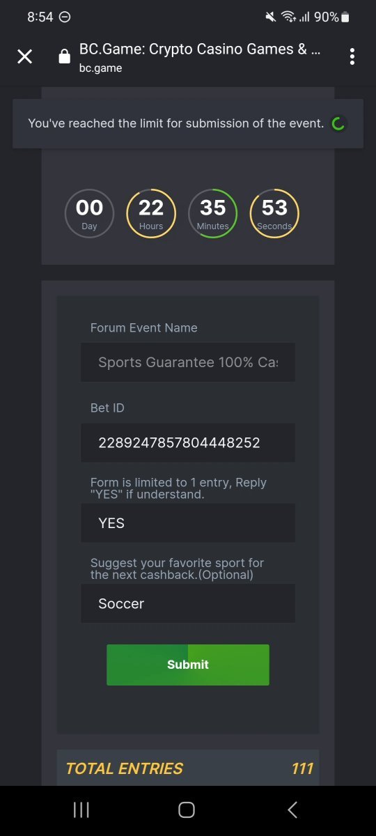 4. Ticket id:2289247857804448252 @BCGame_Maxim I placed a bet on a new eligible match, but when I try to submit it to the forum, it says that it cannot be accepted because I have already submitted a bet on a previous eligible match. What should I do?