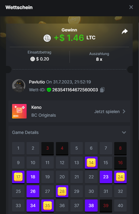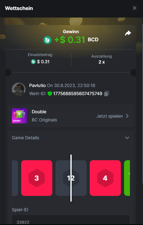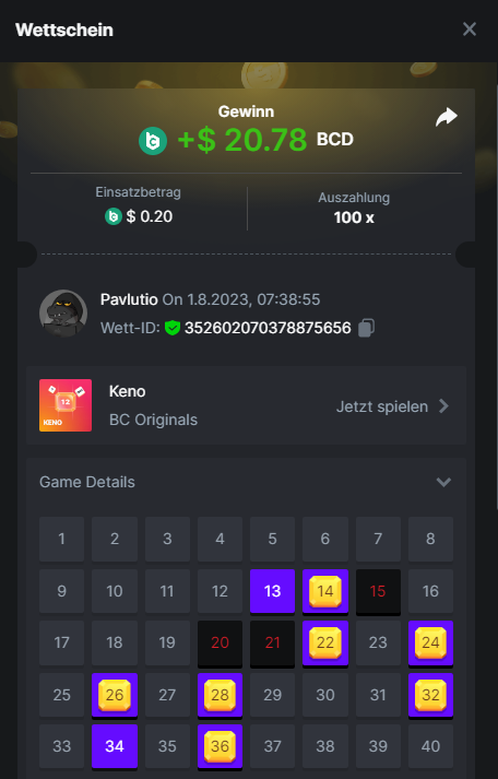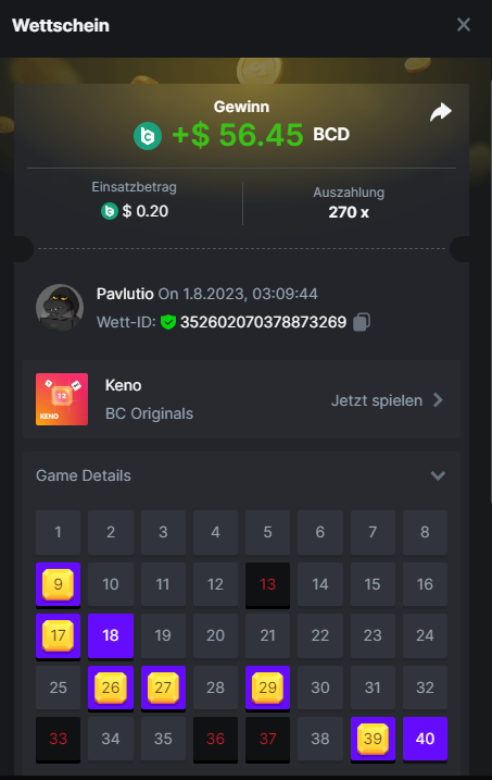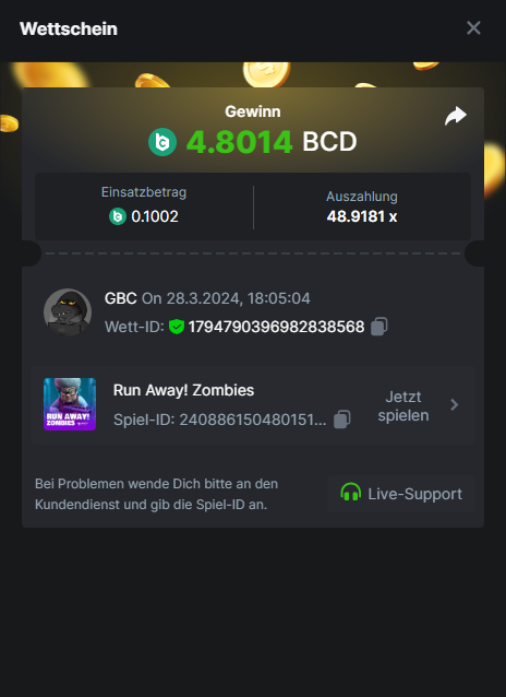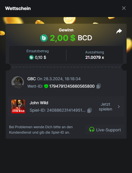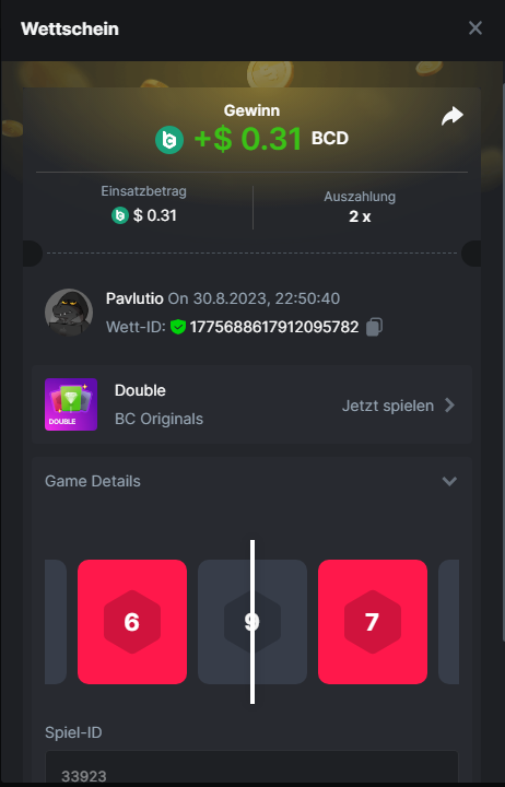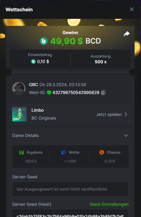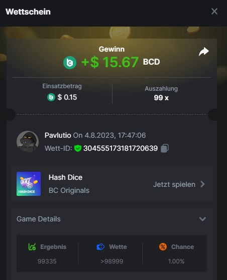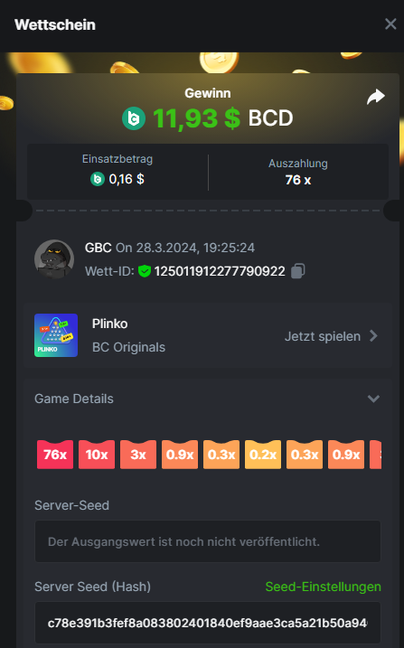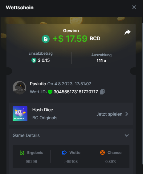 1. Classic Dice x10 https://bc.game/#/sd/11VLHRJG9EDT1F Run away Zombies 10x https://bc.game/#/sd/11VLIIWJAYVR4R Baccarat 9x https://bc.game/#/sd/11VLJ1UIYLB03N John Wild 20x https://bc.game/#/sd/11VLJCRRPWKMO7 Twist 15.5x https://bc.game/#/sd/11VLJVMYZJP89N Hello Easter 20X https://bc.game/#/sd/11VLKHQJX5UFX7 Lucky Easter 30X Red Tiger https://bc.game/#/sd/11VLKVPZ7TD0S7 Plinko 76x https://bc.game/#/sd/11VLNHKXB2B94Z Keno 50X https://bc.game/#/sd/11VLZXXWSETGEB Ring of Fortune 99X https://bc.game/#/sd/11VM109IJOCIBR Keno 259x https://bc.game/#/sd/11VMCHB3928KRF Limbo 500x https://bc.game/#/sd/11VMCSY8LKEMYV Roulette Singe 36x https://bc.game/#/sd/11VSMS95Z2L4P7 Wheel 29.7x https://bc.game/#/sd/11VSNGSS4B8GRR Bonus Bunnies 100x https://bc.game/#/sd/11VSP85GLT76DN Easter Heist 90x https://bc.game/#/sd/11VSSCFCBR49R3 Crash 10x https://bc.game/#/sd/11W08C2OE5G03B Black Jack Player 3!!! Statistik do not work correkt https://bc.game/#/sd/11W0B3OVLQ3INF