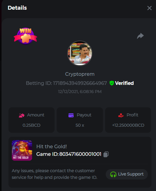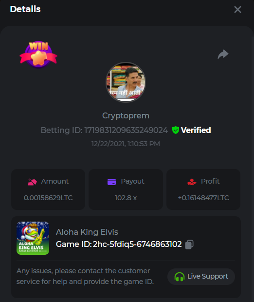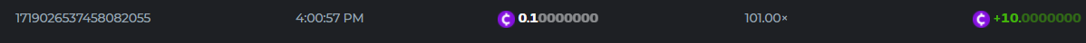 13. Betting ID: 1719831209635249024 Aloha king elvis 102.80x Betting ID: 1719854577341462535 Candy Monsta 134.25x