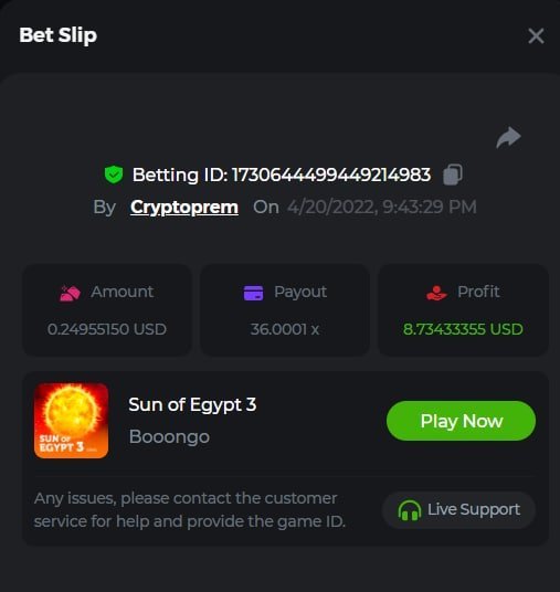 12. Cryptoprem Betting ID: 50780283103871286 569.25X