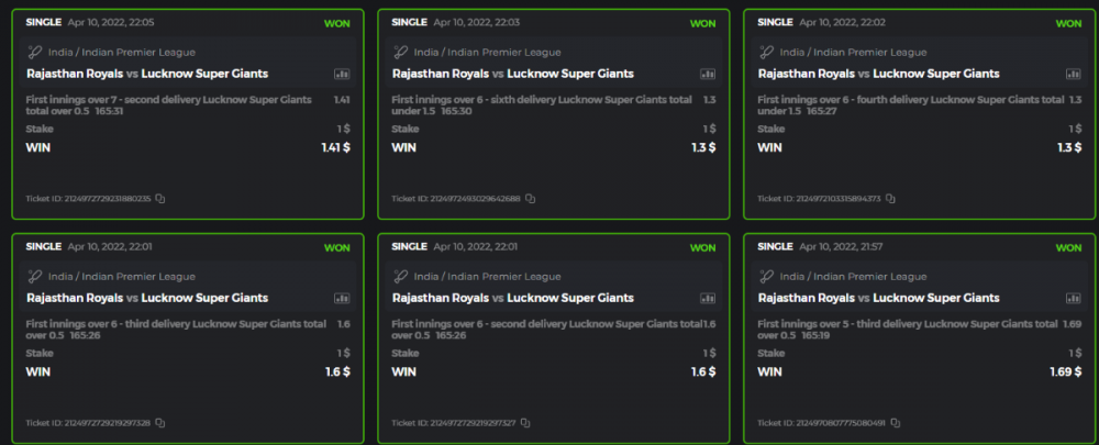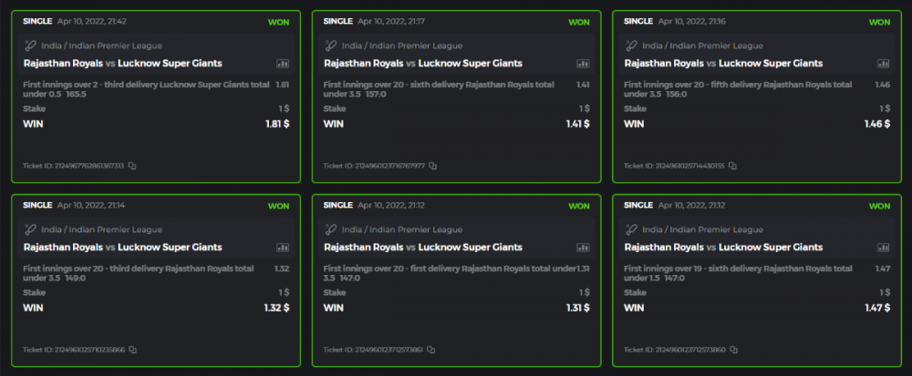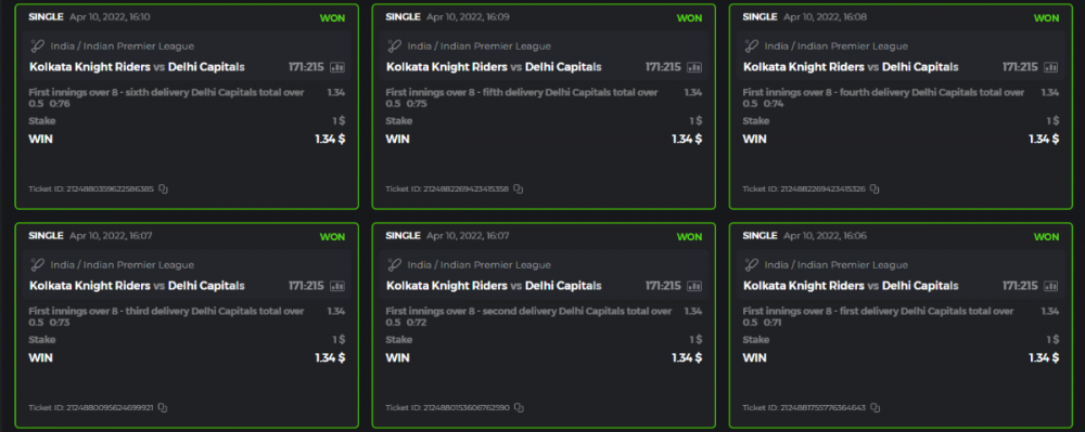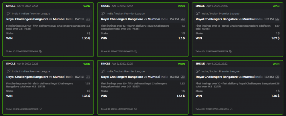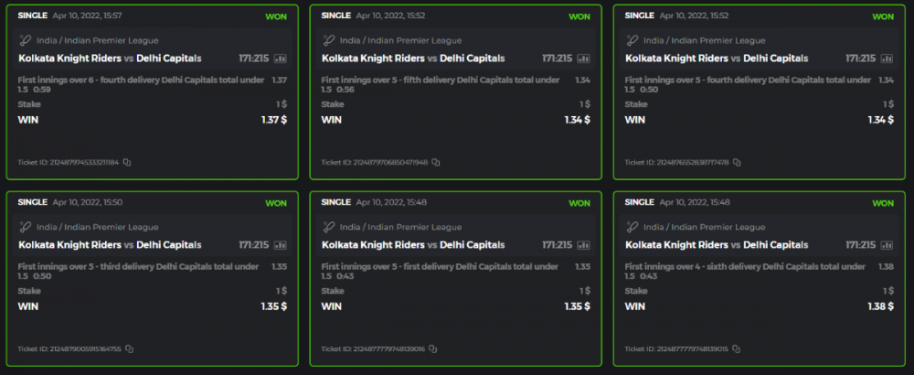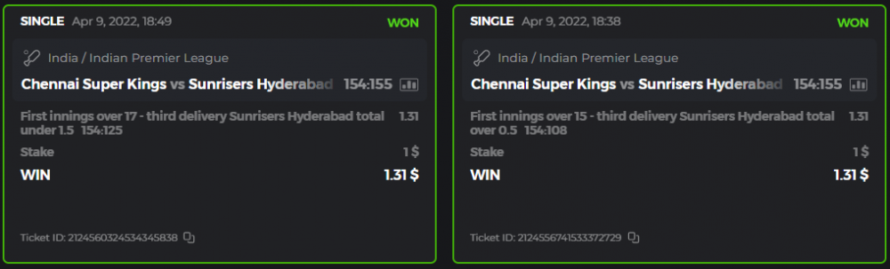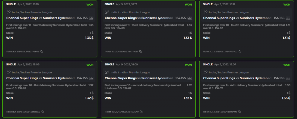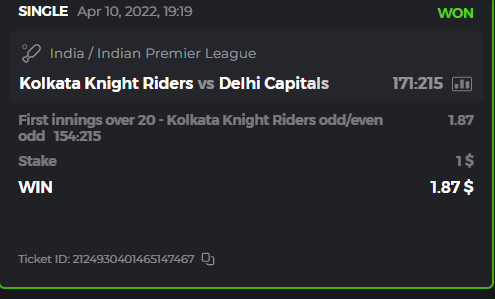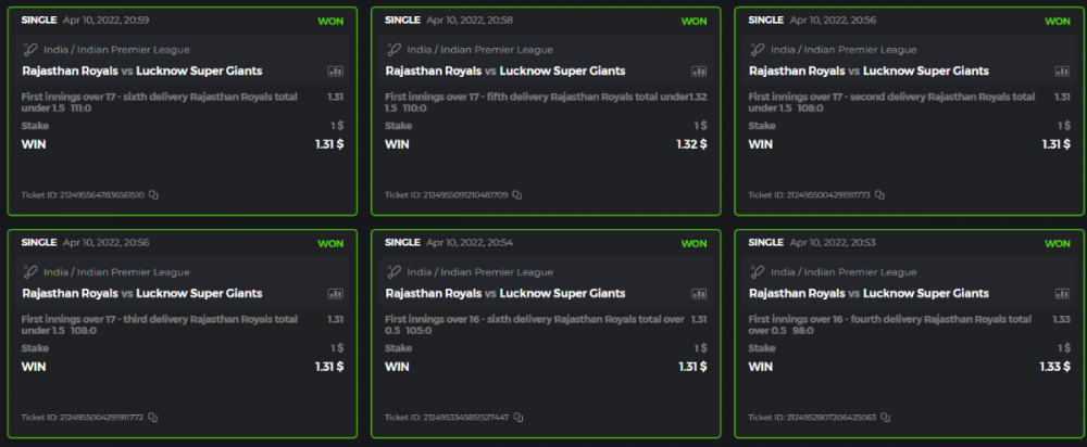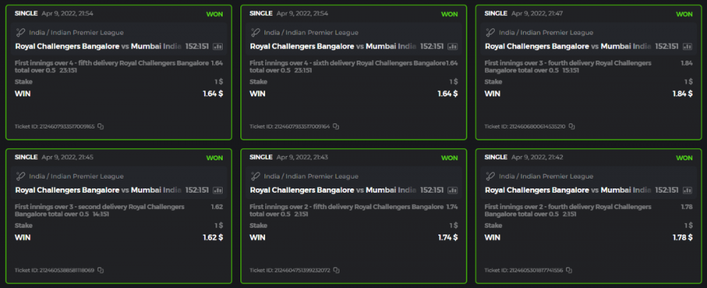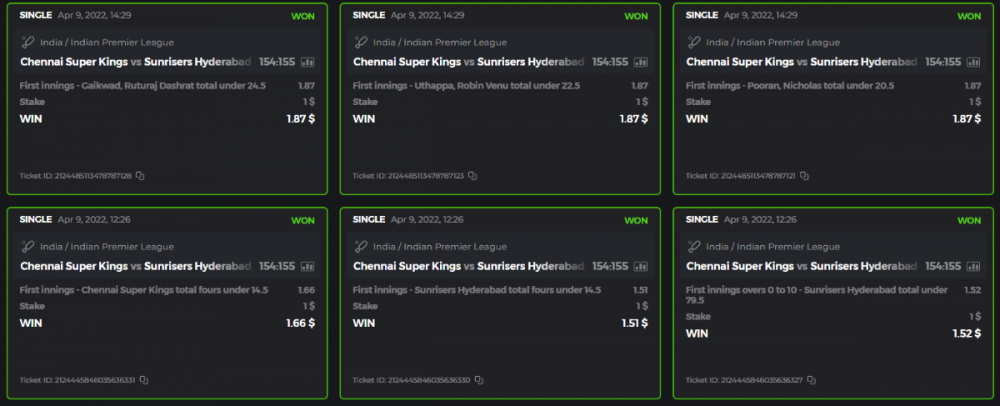 10. Well played bro but i Think your parlay combo bets are invalid because the Minimum odds pr match is 1.3 so you placed bet in combo of 4 than total odds must be atleast 2.8561 but total odds of your parlay combo bets showing 1.78 it means you have selected market lower then 1.3 in combo bet. please upload full screen shot like this of your combo bets so other competitors can see odds and can see that you have placed bets in IPl only in combo bet.. Thanks