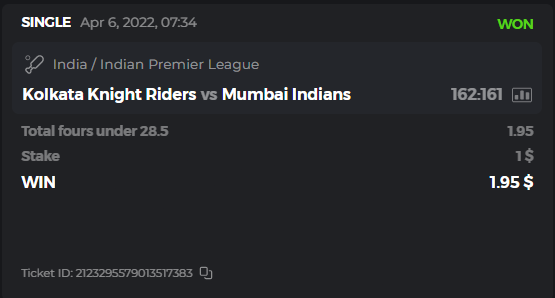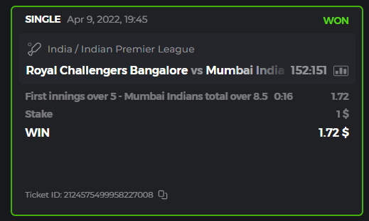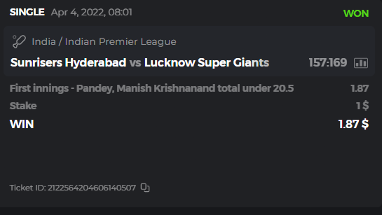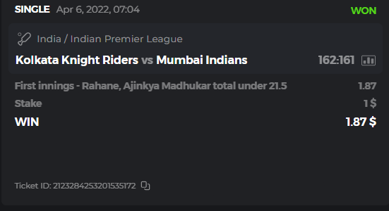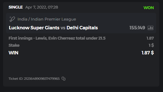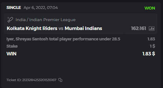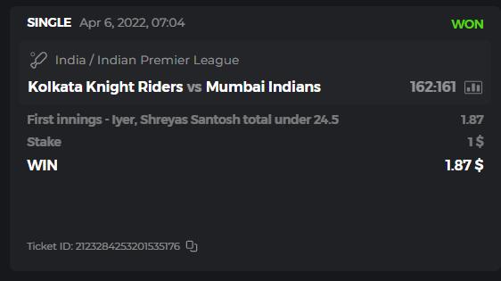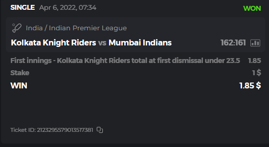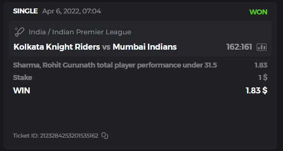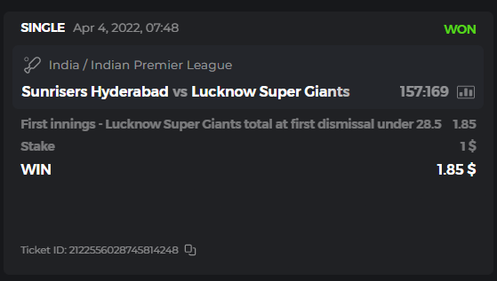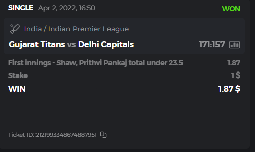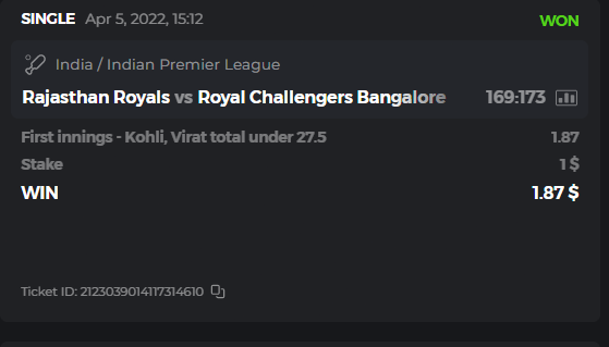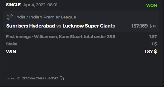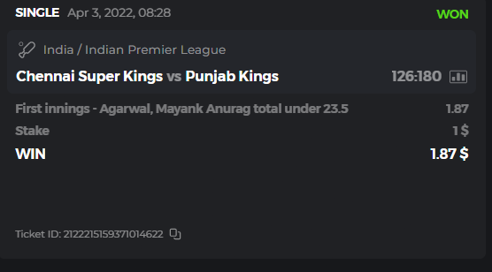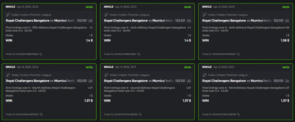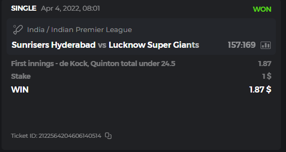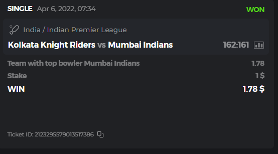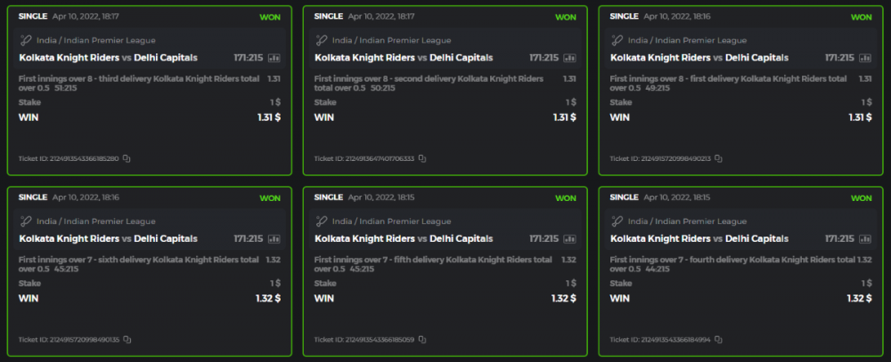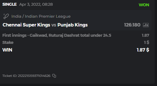 10. Well played bro but i Think your parlay combo bets are invalid because the Minimum odds pr match is 1.3 so you placed bet in combo of 4 than total odds must be atleast 2.8561 but total odds of your parlay combo bets showing 1.78 it means you have selected market lower then 1.3 in combo bet. please upload full screen shot like this of your combo bets so other competitors can see odds and can see that you have placed bets in IPl only in combo bet.. Thanks
