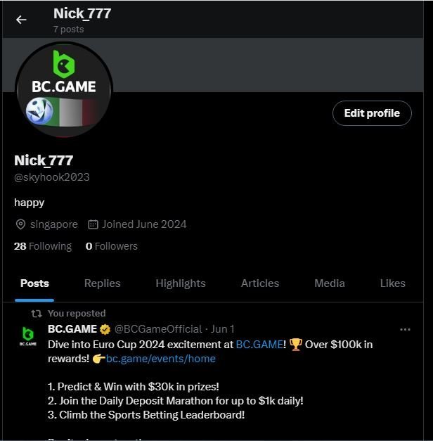 1. https://bc.game/#/user/profile/1353304 User Uid : 1353304 https://x.com/skyhook2023 Username : Nick_777