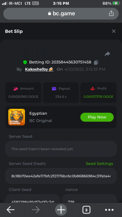 سلام عرض ادب خدمت بهترین مدیر تاریخ بی سی فارسی و کاربران عزیز گرامی اتاق فارسی روشی ک میخوام بهتون معرفی کنم بهش میگیم روش مکلندی وگر = سود ضرایب متوالی = B2B بازیها = لیبمو دایس پایه = یک دویستم بانک آن وین و ضریب = طبق جدول زیر ضریب آن وین 3 25 4 40 5 60 6 100 7&8 130 9&10 200 13 250 20 400 برای ضرایب متوالی بالاتر و نحوه ی گذاشتن آن وین درست حتما به کانال تلگرامی کاکو محمد مکلندی مراجعه کنید چندتا شات از گرفتن ضرایب متوالی هم براتون میذارم ، امیدوارم با این روش وگر و سودی خوبی کنید لعنت به کوکو و خاندان پاکش ..... Macland