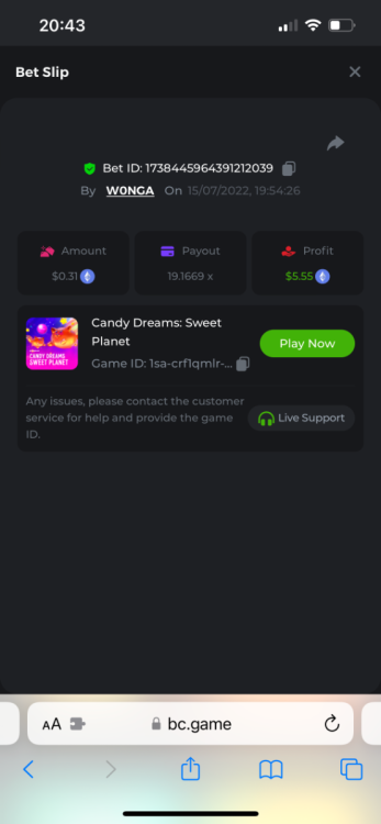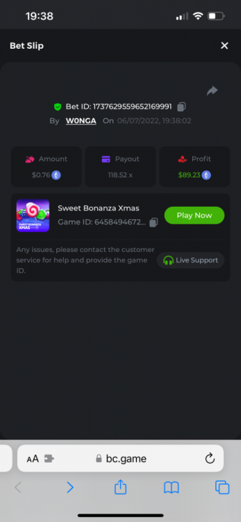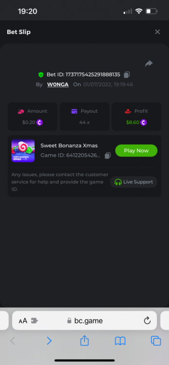 I just need to get this message out there as I can’t reply to the past contest which was closed. I feel that how the outcome was calculated was not accurate. The bounty was to hit 51x exact. However many still claimed the prize for getting 51.4 or 51.2 for example. I do realise that there was a case where one got 51.0008x or so which is valid. But the others in my opinion should have been voided. Ultimately it’s down to bc to decide, but for me it’s a big deterrent to continue playing, pausing, screenshot , copying bet links and updating the forum by navigating through pages of posts as well as waiting a week to claim a prize. I would love to see some investment in such competitions to automate this. Get a public leaderboard on your homepage. It will attract more users. One last suggestion, create a poll and let the ‘community’ decide on the slot providers. -