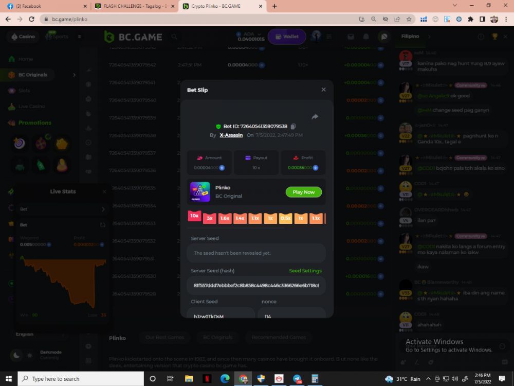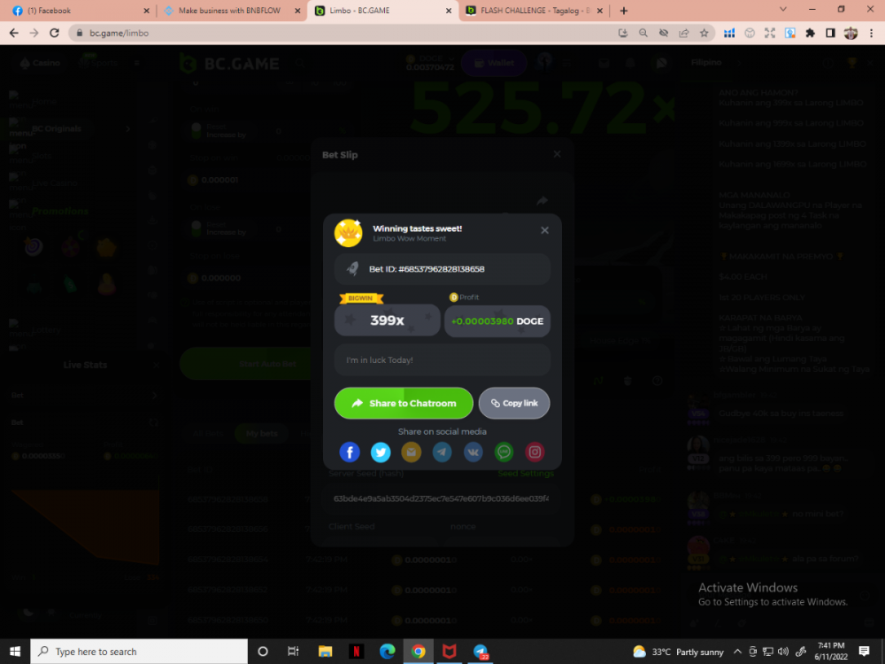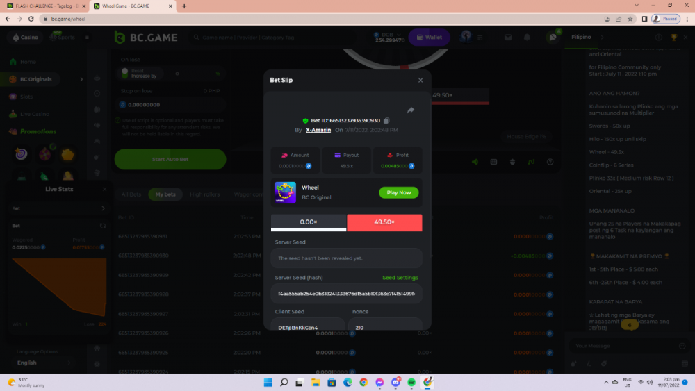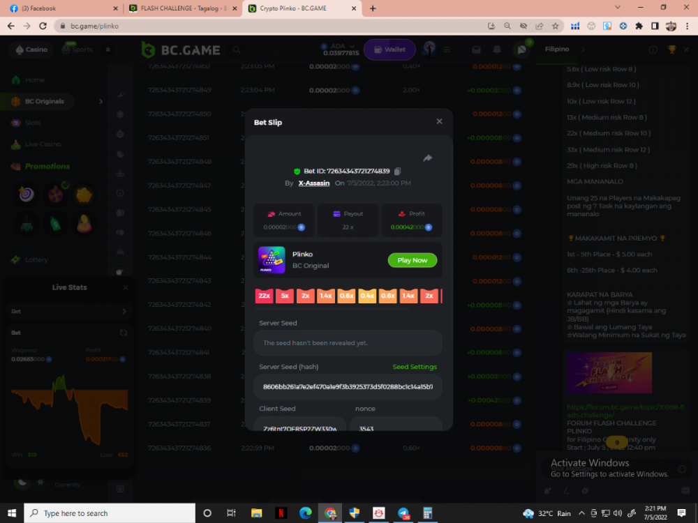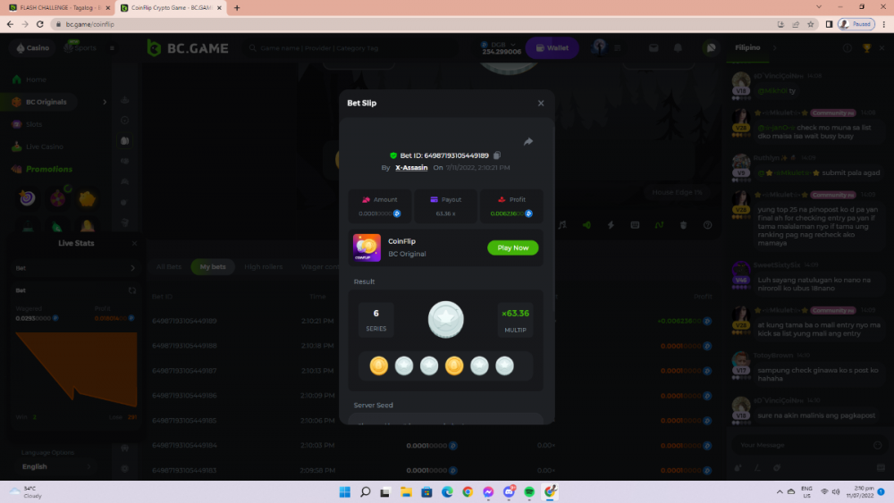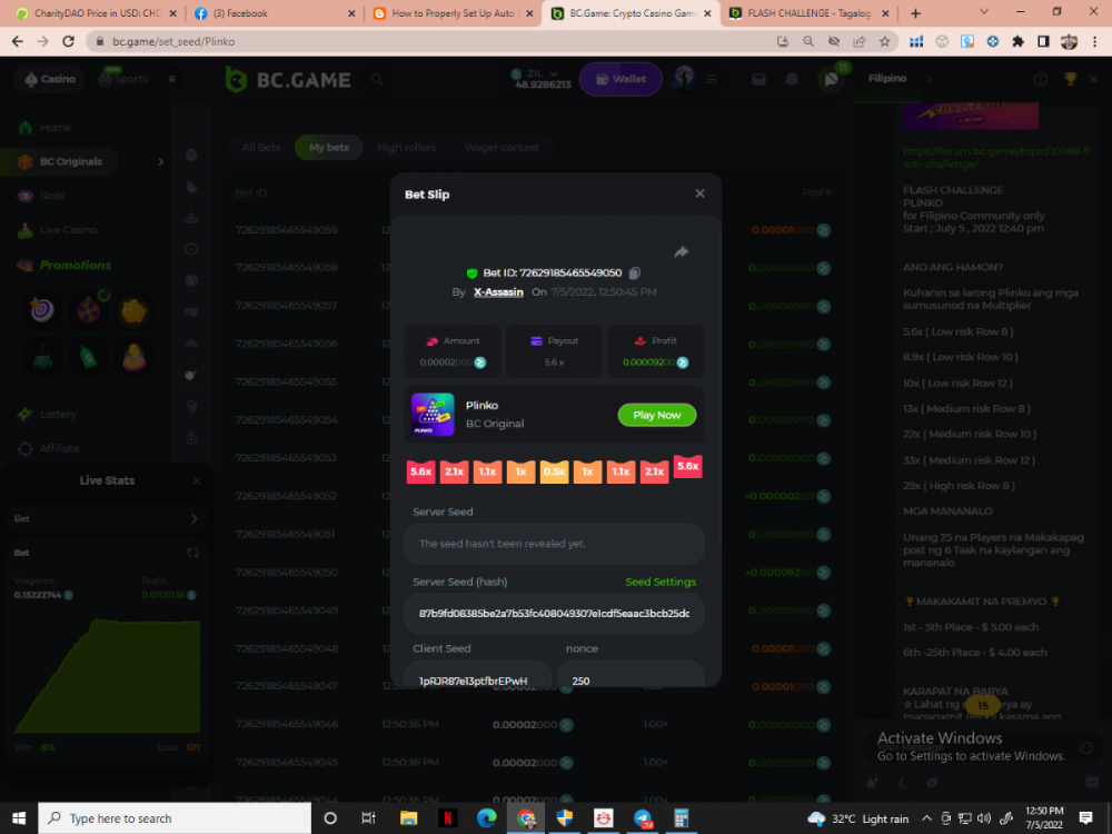 2. Classic Dice - (Autoroll bet mode.) Tyaga ang puhunan dito. Di pwede yung mainipin sa larong ito. Ever since, eto na talaga laro ko mula nung matutong pumasok sa mga palaruan ng perang kryptohiya. Mataas ang porsyento netoh na manalo, matuto ka lang aralin ang bilang ng pula o lose streak kung tawagin. At syempre, need mo lagyan nang data ang "stop on win"', kung ilan lang nais mong mapanalunan, ganun din sa "on lose" kung ilang % dapat idagdag tuwing talo ka, at ang pinakahuli, ay wag kalimutan ang "stop on lose" yung kaya mong ipatalo sa bankroll o funds na meron ka. Dapat 1/4 lang ng bankroll ilagay doon. Kapag inabot yun, nasa iyo na ang pagpapasya kung itutuloy ang laro o hindi. Yun ang kagandahan nun, sa larangan ng sugal o sa totoong buhay, need mo din umatras sa hamon ng buhay kung kinakailangan. Last but not da least 'ika nga nila, sa sugalan, need talaga bak ap ng funds.. pag naubos ang nilalaro mong token, sa larong dice, hangga't may bala may berde sa dulo.. (maliban na lang, if lag talaga ang network mo)!