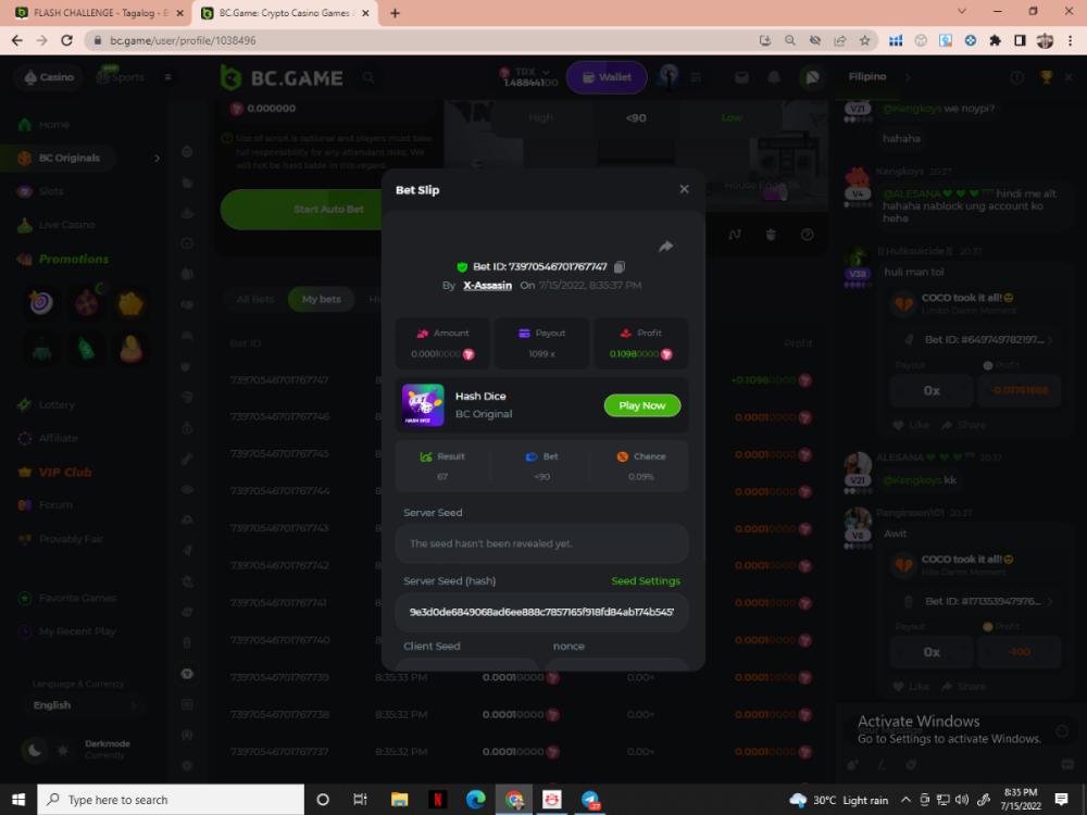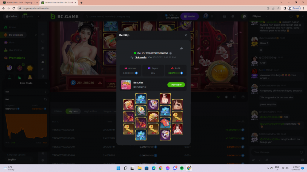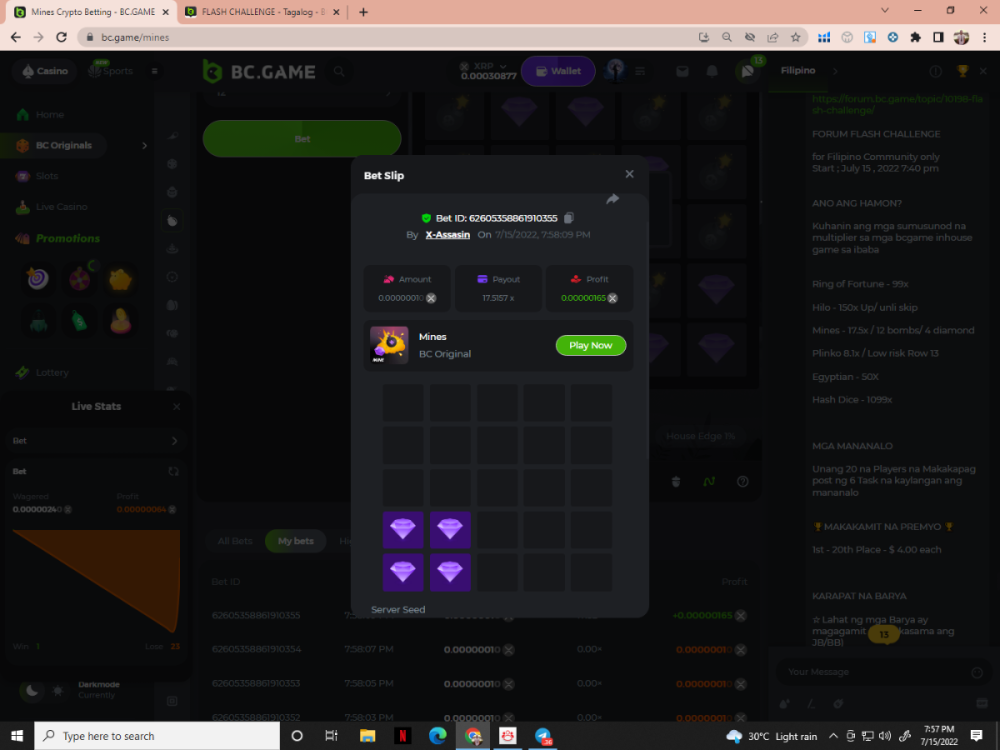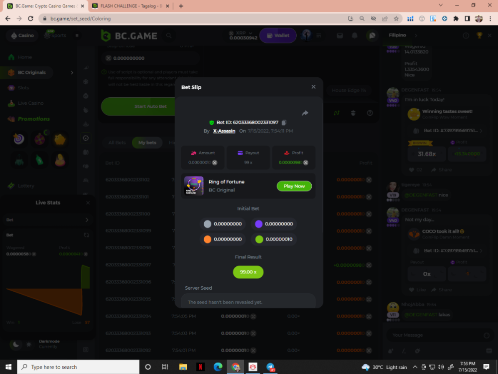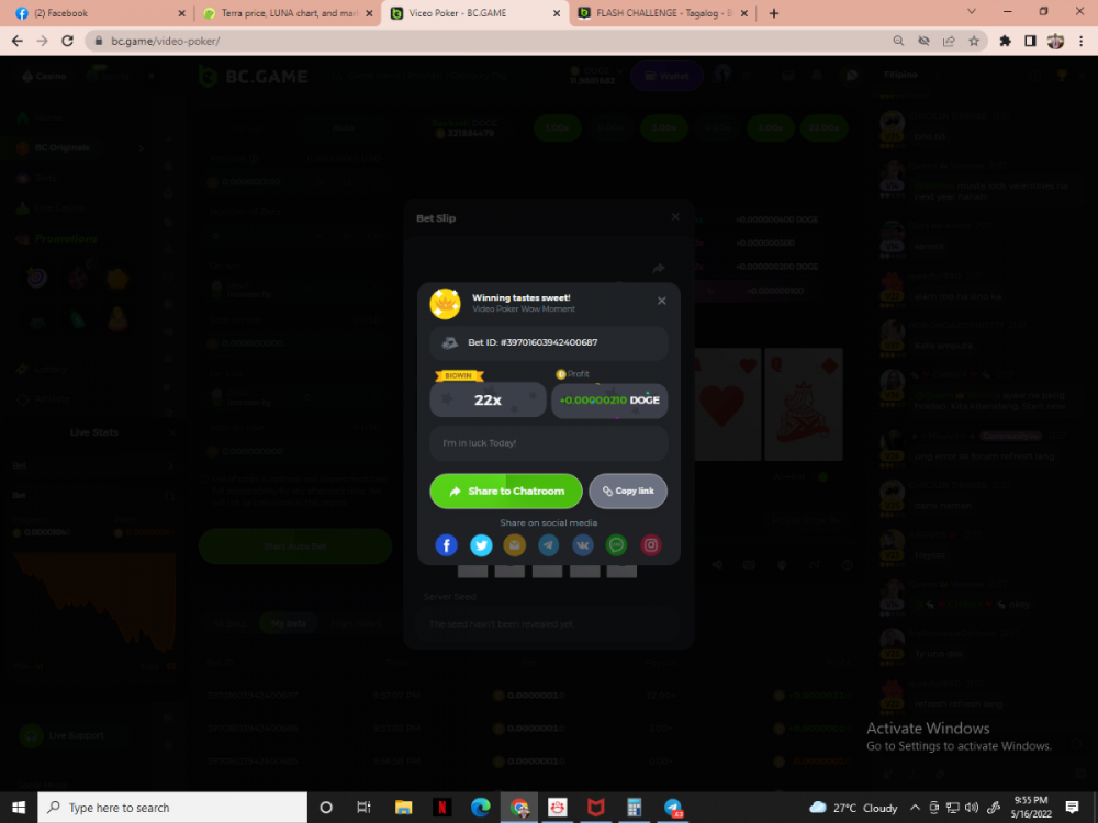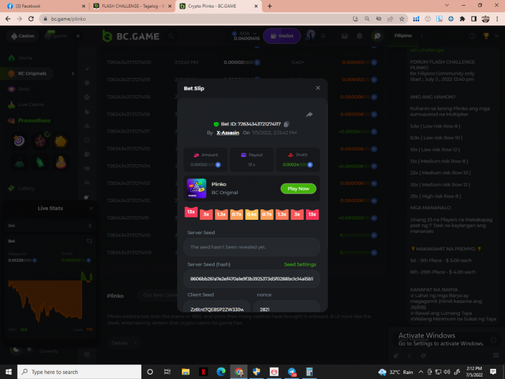 2. Classic Dice - (Autoroll bet mode.) Tyaga ang puhunan dito. Di pwede yung mainipin sa larong ito. Ever since, eto na talaga laro ko mula nung matutong pumasok sa mga palaruan ng perang kryptohiya. Mataas ang porsyento netoh na manalo, matuto ka lang aralin ang bilang ng pula o lose streak kung tawagin. At syempre, need mo lagyan nang data ang "stop on win"', kung ilan lang nais mong mapanalunan, ganun din sa "on lose" kung ilang % dapat idagdag tuwing talo ka, at ang pinakahuli, ay wag kalimutan ang "stop on lose" yung kaya mong ipatalo sa bankroll o funds na meron ka. Dapat 1/4 lang ng bankroll ilagay doon. Kapag inabot yun, nasa iyo na ang pagpapasya kung itutuloy ang laro o hindi. Yun ang kagandahan nun, sa larangan ng sugal o sa totoong buhay, need mo din umatras sa hamon ng buhay kung kinakailangan. Last but not da least 'ika nga nila, sa sugalan, need talaga bak ap ng funds.. pag naubos ang nilalaro mong token, sa larong dice, hangga't may bala may berde sa dulo.. (maliban na lang, if lag talaga ang network mo)!