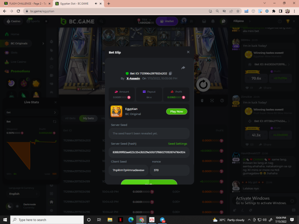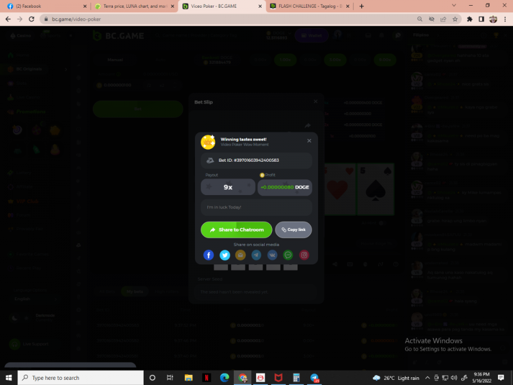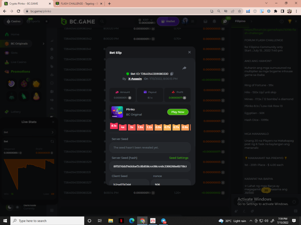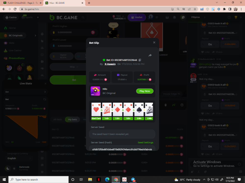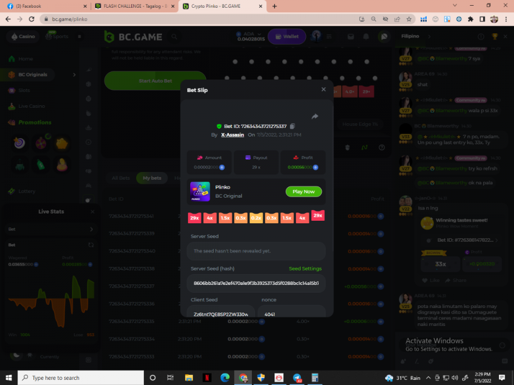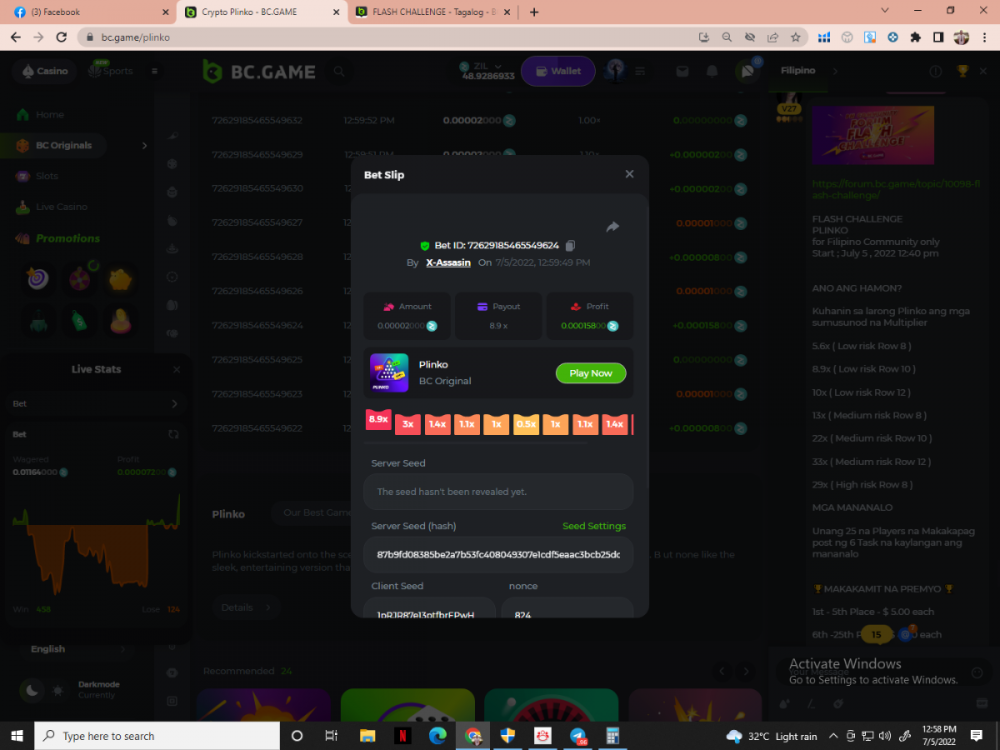 2. Classic Dice - (Autoroll bet mode.) Tyaga ang puhunan dito. Di pwede yung mainipin sa larong ito. Ever since, eto na talaga laro ko mula nung matutong pumasok sa mga palaruan ng perang kryptohiya. Mataas ang porsyento netoh na manalo, matuto ka lang aralin ang bilang ng pula o lose streak kung tawagin. At syempre, need mo lagyan nang data ang "stop on win"', kung ilan lang nais mong mapanalunan, ganun din sa "on lose" kung ilang % dapat idagdag tuwing talo ka, at ang pinakahuli, ay wag kalimutan ang "stop on lose" yung kaya mong ipatalo sa bankroll o funds na meron ka. Dapat 1/4 lang ng bankroll ilagay doon. Kapag inabot yun, nasa iyo na ang pagpapasya kung itutuloy ang laro o hindi. Yun ang kagandahan nun, sa larangan ng sugal o sa totoong buhay, need mo din umatras sa hamon ng buhay kung kinakailangan. Last but not da least 'ika nga nila, sa sugalan, need talaga bak ap ng funds.. pag naubos ang nilalaro mong token, sa larong dice, hangga't may bala may berde sa dulo.. (maliban na lang, if lag talaga ang network mo)!