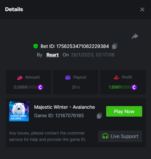 10. Majestic Winter - Avalanche https://bc.game/#/sd/112BHKTAKTF28J x20