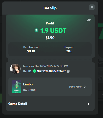 Easy 2. Instagram, IG Username : herrycaineng 4. Twiter Username : @HerryNeng 5. Twiter Username : @HerryNeng 6. https://www.facebook.com/herry.suto 7. Win a payout of 20x on the original Limbo game. 8. Win a Sports bet with a minimum payout of 1.5x odds (Only for single bets). 9. Get a 20x multi in the Arabian Secret slot game. 10. Get a 30x multi in the Sugar Fiesta 1000 slot game. 11. Activate 2FA security on your BC.Game account. Take a screenshot of 2FA and keep it active till the result is announced. Medium 3. Get a payout of 73.6x on the original Plinko game Risk-High, Row-10. 4. BC original Roulette Single game Win 36x on the on number 0. 10. Buy at least 2 BC Porsche lottery tickets using $BC Token send screenshot in forum post. HARD Win on Wheel 48x or higher - Row 50, Segment High.