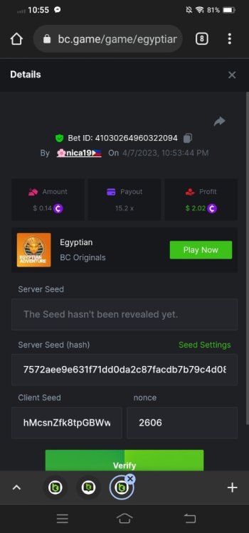 Easy 1.Win a Classic Dice bet with a 5x payout. https://bc.game/#/sd/11731SD702ONBN 2. Win a 'Tie' 9x bet on the Baccarat. (no spread bets) https://bc.game/#/sd/117322X9F5VP5F 3.Get a 10x payout on a Crash bet. Make sure you catch the moon. https://bc.game/#/sd/117353PQ8F1EKZ 4.Get a 10x payout on the Egyptian Adventure. https://bc.game/#/sd/11735CPG4L7EOJ 6.Win a Cave of Plunder bet on 7.50x payout (Completing all book symbols). https://bc.game/#/sd/11734PM71WZHG3 7. Win a Sports bet with minimum odds being 1.5x (singles only) 1$ base min amount. 2256268329318756576 10.Enable 2FA for your BC.Game account + Verify E-Mail & Phone Number (If it's already activated, keep it activated) ALL ARE ACTIVATED Medium 1. Win a bet in Roulette Single with betting on 0 only (36x). (no spread bets) https://bc.game/#/sd/11732MJ3KVG6XF 2. Get 76x on PLINKO https://bc.game/#/sd/117498NJHWOGSZ 4. Win a Sports bet with minimum odds of 2x (singles only) 1$ base min amount. 2256296308891595219 6.Win a bet on Keno Single by selecting numbers 7, 30, and 8, Medium risk. (50x). https://bc.game/#/sd/1173679AZEPZPV Hard 1.Get a 49.50x on Wheel (50 segments, High risk). https://bc.game/#/sd/11732HQ2P0LBMB -