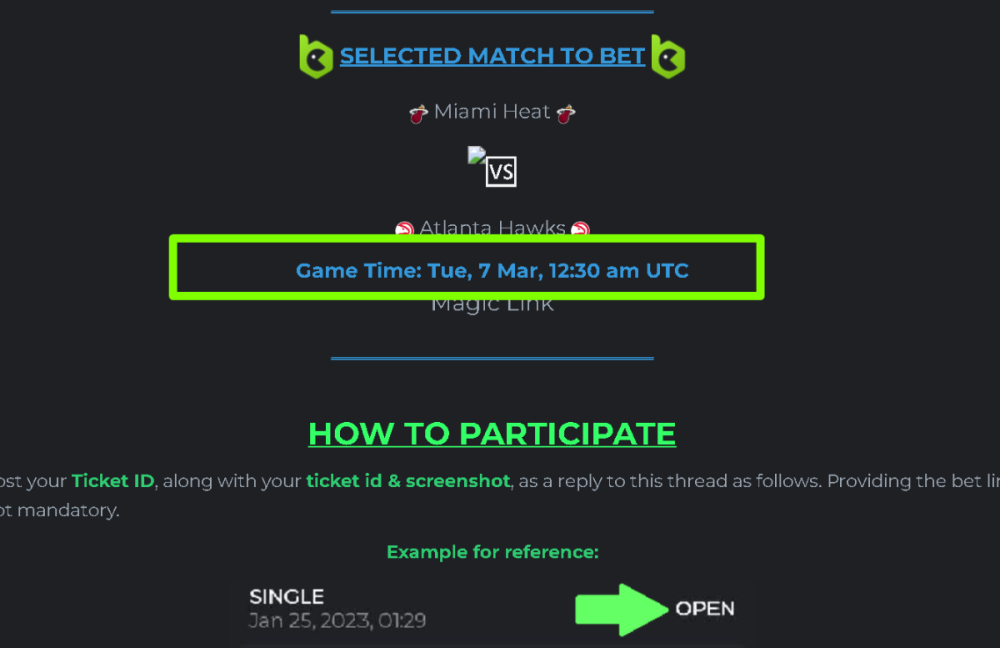 Sports Guarantee 100% Cashback! #17 Starts: 01, March 01:00pm GMT Ends: 08, March 01:00pm GMT Dear BC Family!!! Enjoy our unique and fantastic guaranteed event—A Memorable, zero-risk chance to endeavour your betting instinct again. The opportunity is here, and luck in the match's odds, limited to the first 300 entries !!! First come first serve basis!!! This time, on your 'OPEN' bets we guarantee 100% cashback on your loss, up to US $100! Don’t miss this amazing chance! A chance to play zero-risk bet on the Specific NBA Match. RULES Place a Bet on our Specific NBA Match and get a guaranteed 100% cashback if you lose! This post will be auto locked 30 minutes before the match start time. Submit your bets 'OPEN'. Only LOST bets from the first 300 entries will get 100% cashback. Edited posts are not allowed. Do not edit your post. Create a new one if necessary. Edited entries posts will not be entertained. Place a single bet on any bet-market of your choice. Using a Free bet ticket to enter this event is non-acceptable. Only one(1) single bet per person is accepted. Bet with “OPEN” is valid to submit. For multiple valid ticket IDs, only the highest will be considered. Single bets only - Multis & Combo parlays are not acceptable. Hedging is strictly not allowed. 100% cashback, up to $100 REQUIREMENTS Minimum VIP Minimum VIP 22 Level and above. 1. Must be email verified. 2. Must Enabled 2FA Minimum Odds requirement Minimum odds 1.5 (European) and above. Minimum bet size Equivalent to US $5 Bet type Only Pre-match OPEN Bets Eligible currencies All cryptocurrencies are eligible (except JB,BCL) ____________________________________ SELECTED MATCH TO BET Miami Heat Atlanta Hawks Game Time: Tue, 7 Mar, 12:30 am UTC Magic Link ____________________________________ HOW TO PARTICIPATE Post your Ticket ID, along with your ticket id & screenshot, as a reply to this thread as follows. Providing the bet link is not mandatory. Example for reference: Ticket ID: 2222136272049279484 TERMS & CONDITIONS The ticket ID will not be counted if the selected match results in a void or postponement. If the selected match is canceled or postponement, the round of this event will be canceled. Cashed-out bets are not eligible. Hedging is strictly not allowed. Bets must be placed & settled during the time window specified above. This thread will automatically lock when the event time ends. One (1) entry per family. If someone attempts to claim multiple prizes, they will be disqualified from the challenge as well as all future challenges. This may also result in account termination. Failure to follow the instructions will result in the cancellation of your submission. By entering this challenge, you acknowledge that BC.GAME has final decision rights over results and placement. Cashback will be paid within 48 hours after the event on the forum finishes in BCD for bets placed in cryptocurrency and in fiat currency for bets placed using fiats up to a maximum of $100. Good Luck everyone!