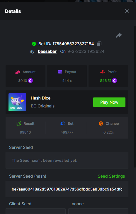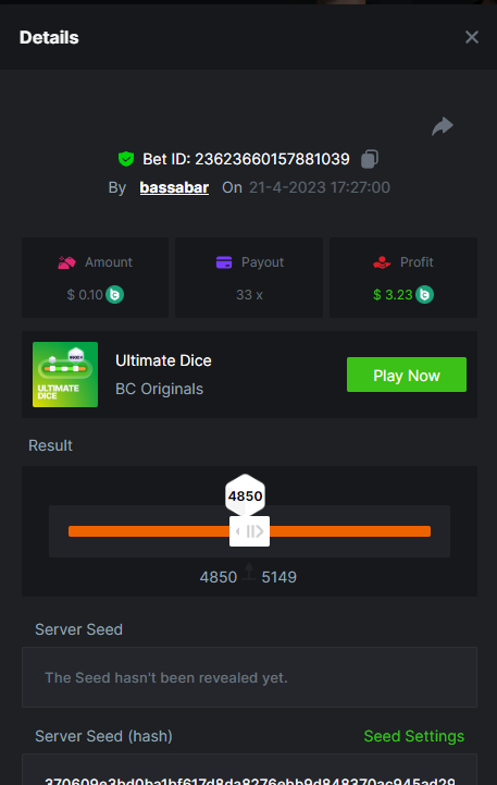 13. Highest multiplier: 486.213x Bounty (AAA or KKK): Yes Multiplier: 486.213x https://bc.game/#/sd/115W66QQU4A80J Bounty(KKK): https://bc.game/#/sd/115VAVB5LCGD1V