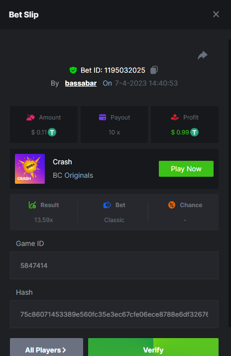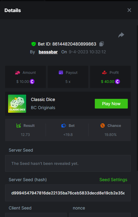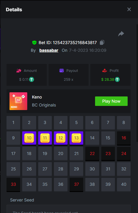 14. Flips: 10 Bounty: Yes https://bc.game/#/sd/115LGEBWTE77YR