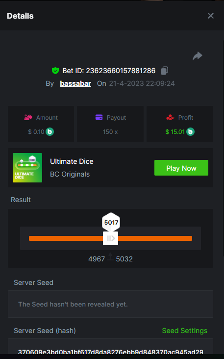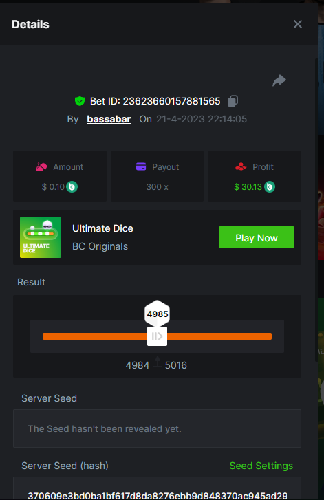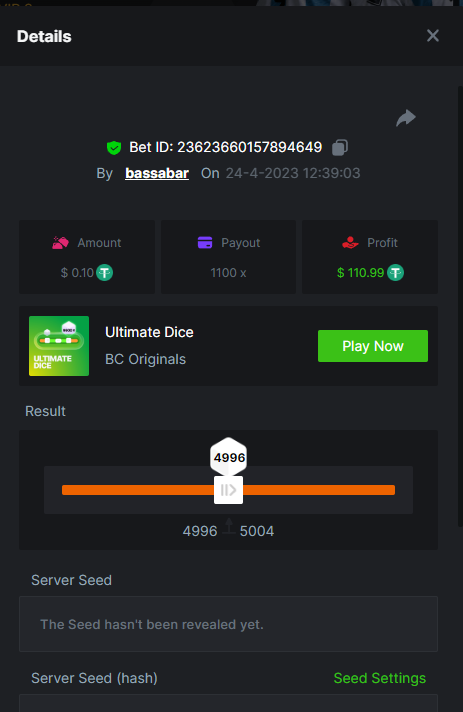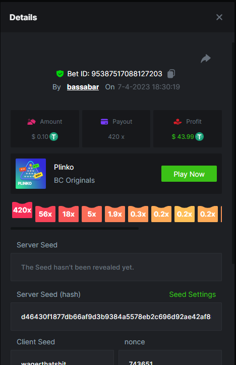 12. Highest multiplier: 506x Bounty (500x or higher): Yes Multiplier: 506x (Bounty too) https://bc.game/#/sd/1164W01WHEO8IB