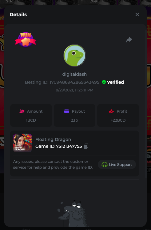 Starts: 10:00, October 4 GMT Ends: 10:00, October 11 GMT Welcome back VIPs! This week's challenge games are CLASSIC DICE and ULTIMATE DICE - We also have a few updates to the prizes in order to accommodate a second challenge (Prestige). First place prize has been increased to $1,250! What's the Challenge? Hit as many of the following 22 payouts on our in-house CLASSIC DICE or ULTIMATE DICE . You must hit a MINIMUM of 5 payouts to qualify: 10x - 20x - 30x - 39.9193x - 40.0809x - 50x - 100x - 150x - 200x - 250x - 330x - 450x - 550x - 660x - 990x - 1100x - 1237.5x - 1650x - 1980x - 3300x - 4950x - 9900x Please Note - 40x was replaced with 39.9193x and 40.0809x as there is no 40x payout for dice. Sorry that was my fault! Each payout you hit counts as 1 point, with a maximum of 22 points. If there is a tie, the player with the higher average bet amount (in USD) shall be the winner. The payouts must be the EXACT payouts listed above. Must be a WINNING bet. MASTER BONUS - Hit 9,900x with valid bet amount to receive $100 no matter if or where you place on the podium! Minimum VIP Tier Must be VIP08 or higher in order to enter this challenge. Minimum Bet Size $0.35 USD equivalent (please check the individual coin amounts below) - Bets made below this amount will not count. Eligible Coins All coins are eligible (excluding JB) Available Prizes 1st Place....,.. $1,250 2nd Place..... $600 3rd Place...... $300 4th-20th ...... $50 /ea How to Enter To enter, copy the bet ID of the bet you'd like to submit Once you've copied it, post it as a reply to this thread like so: Betting ID: 1708854428417660423 In the same post, upload a screenshot of your win by clicking the game ID WITH VIEW IN USD mode ENABLED (accessible at the bottom of dropdown menu for your wallet up top. This way, we can ensure that your bet indeed met the minimum requirement at the time of placing it: Please combine all of your hits together in a SINGLE post. Edit, don't create a new post. Bets must be posted within 24 hours of placing bet in order to keep things fair for everyone. Bets must be made during the specified time window stated above. This thread will lock automatically when the time period is over. One (1) entry per household. Anyone found attempting to win multiple prizes will be disqualified from this challenge as well as all future challenges. Furthermore, you will go on the WALL OF SHAME for all to see that you are a scam. Scam 4 Scam. Failure to follow instructions will result in your submission being null and void. By entering this challenge, you acknowledge that BC.Game has the final decision on results and placement. Payouts will be made within 48 hours of challenge completion, please be patient, we promise you that we haven't forgotten. We check and double check to make sure the rightful winners receive their prize. Don't die. Dying constitutes as a withdrawal from the challenge on the players end, meaning you're disqualified. So you should most likely wait until after the challenge is over. Or just don't. Good luck to everyone, look forward to seeing who comes out on top this week!