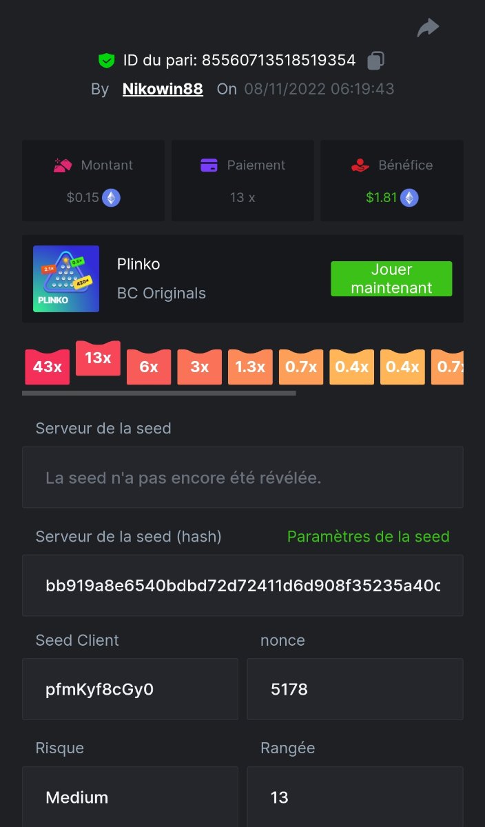 10. Bounty : Limbo x1000 https://bc.game/#/sd/10Z2PTS1GPXCLV hash dice x30 https://bc.game/#/sd/10Z2PY5XTPLJIR
