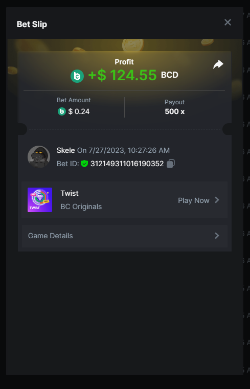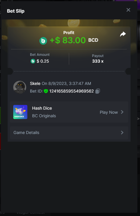 8. codes are always gone within a few minutes at best. After wagering a little over 3 mill at BC, i don't think there are any strategies that are always going to be profitable for people consistently. Really there are ones that seem like they are profitable more consistently than others, but there are still going to be days where you lose your ass doing them. Some of my best days were honestly when i would play manually on like limbo, or coin flip. Just watching the patterns and hoping that they would repeat. I was able to cash out a couple grand starting from like 50$ on both of them, but that is by no means consistent its just variance and luck. Any pattern you think you find is really just coincidence or should be anyway, because prior outcomes technically do not affect the chances of the current one. That being said they are still just hashing a seed, so it isn't going to be completely random, so maybe you will get lucky and notice something that you can get to repeat. If that happens, just don't change your seed lol.