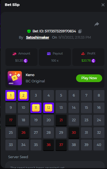 $2,500 Prestige Keno Multiplayer Challenge #45
