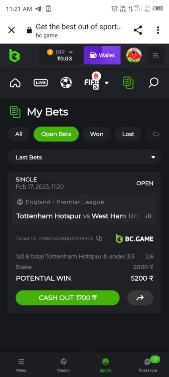 1. pre match odds was 2.21× and you can check time of this bet and as you can see in screen shot payout also showing 18122 inr which is 2.21× not 1.21× ..see and resolve my problem ticket I'd= 2213056325770944801