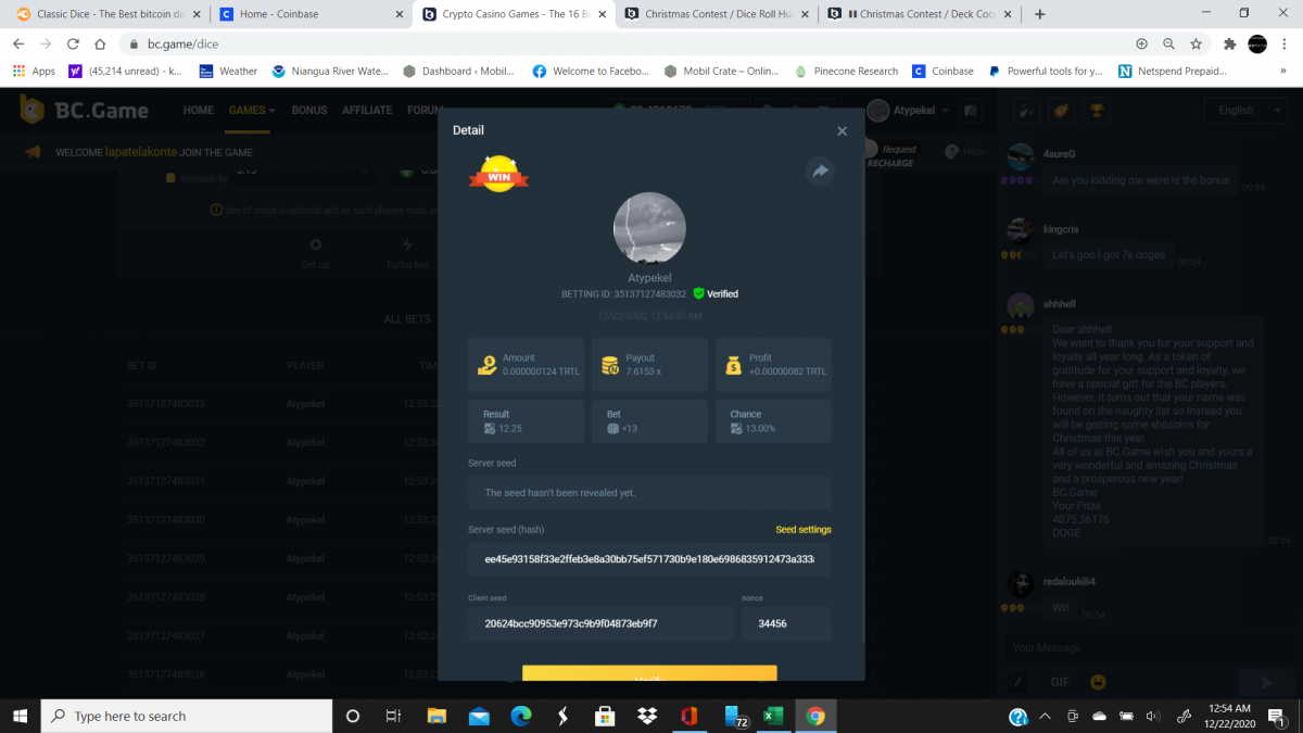 1. Just messing around with some shit coin and look what happens! Hit 12.25!!! Merry Christmas!