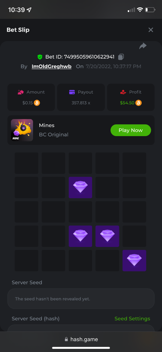 3. https://hash.game/sd/?sd=10P5KHI4OGAX3N like damn it I didn’t have 15 cents to bet with can I get an honorable mention
