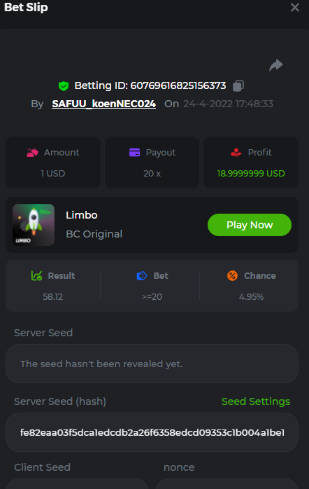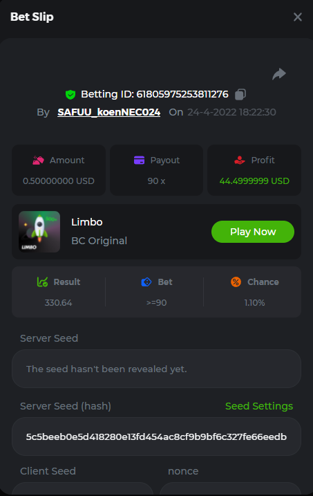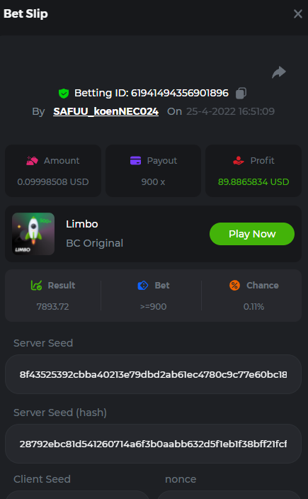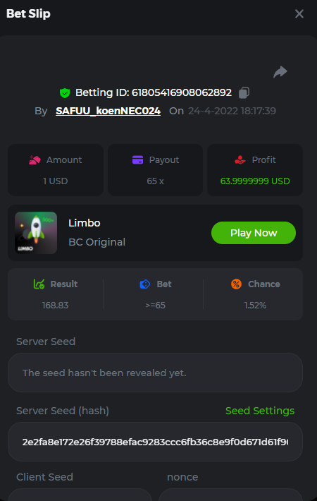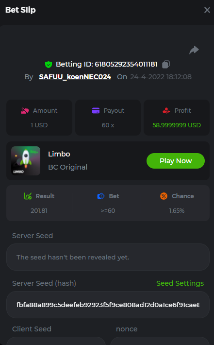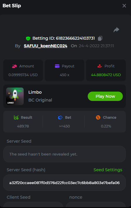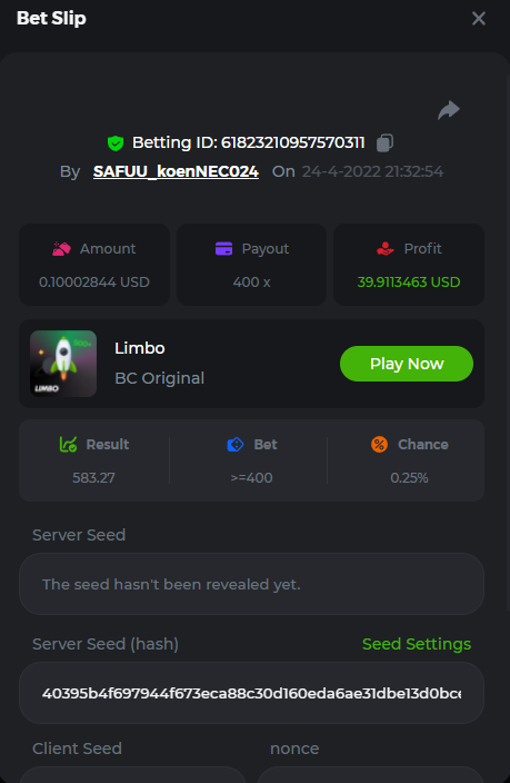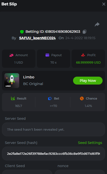 2. http://bc.game/sd/?sd=10ISWROTJRJBBN 71.59 X on 0,40 bet