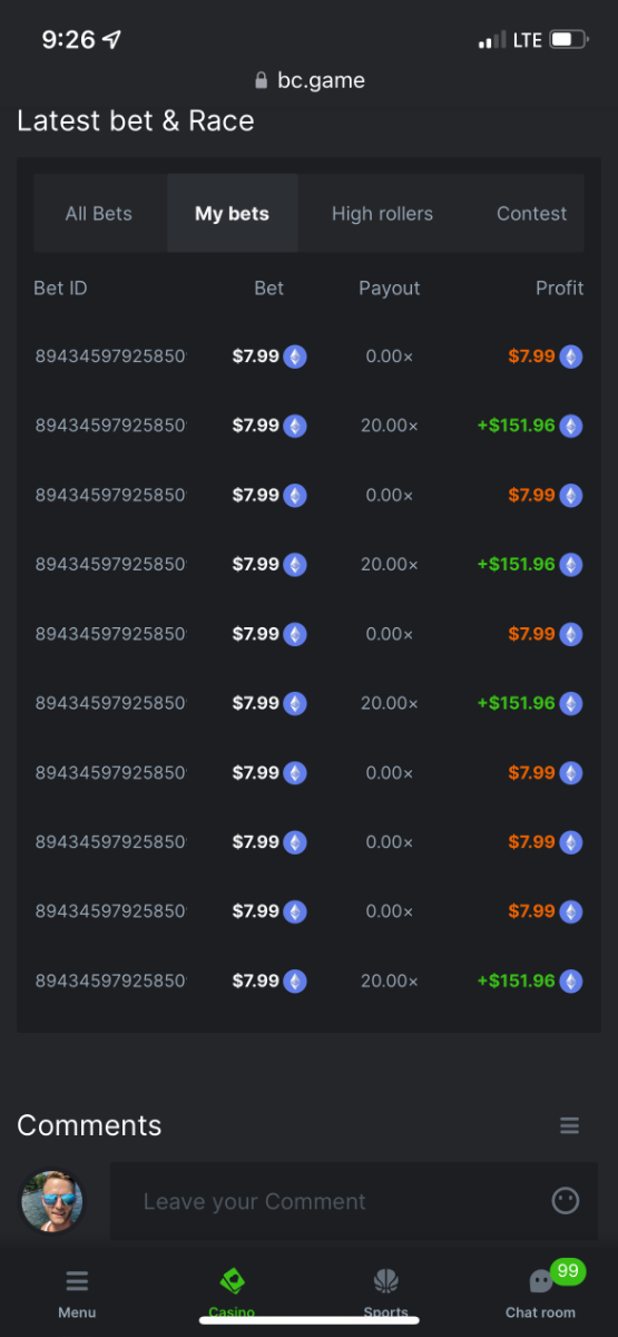 Hit same bet 5times in 20 bets.Good day this was