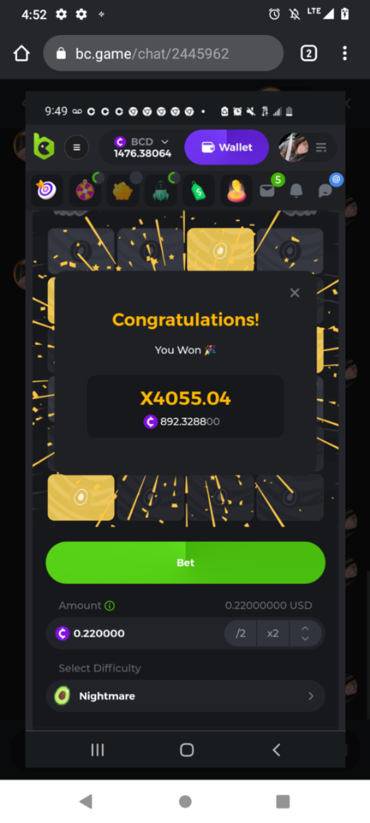 This is rare for me. I know i will probably lost everything on the next bet. Small wins will accumulate, so play it calm and safe guys.