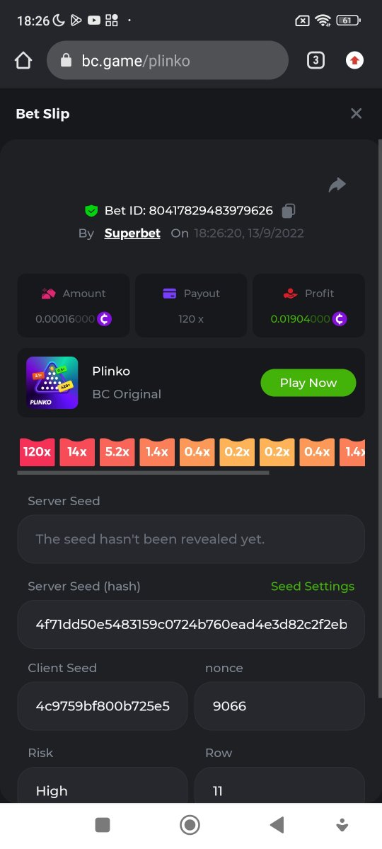 Black Tiger Posted September 13, 2022 Share Posted September 13, 2022 (edited) Read Carefully Before Start To Hunt Daily Challenges #13 : PlinkoHunt :Win the highest pay outMin Payout requirement 60xMin Level 4️Duration Starting : Now End time : 23.59 UTC Time How to Join? Only Post on BC.Game Telegram Official HEREMake screenshot + paste your bet link + tg user name To get bet link can check HERE Any coin allowedReward Prizes 1st Place....... $7 BCD2nd Place..... $5 BCD3rd Place...... $4 BCD 🎖4th Place......$3 BCD5th - 10 th Place......$1 BCD 🏵 Winners will be announcing next day after Roll Point ========================== On Going Event $4,000 Top Tier Evoplay Multiplier Battle! $2,500 Prestige Tower Legend Challenge #46 Soccer Top 5 league 100% cashback ! $250 BC.GAME SPORTS PARLAYS CHALLENGES #21 $500,000 Spinomenal's Grand Holiday Tournament TOUCHDOWN! NFL 50% Cashback ! Forum Daily ChallengesDiscord Daily CHallengesTelegram Daily Challenges Edited September 13, 2022 by Black Tiger 1 Link to comment Share on other sites More sharing options...