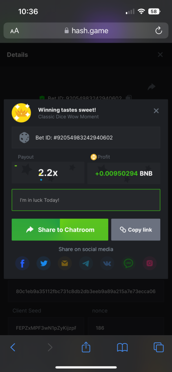 Johnnyg42386 Posted October 24, 2022 Share Posted October 24, 2022 https://hash.game/#/sd/10VP266PI3PT03 Link to comment Share on other sites More sharing options...