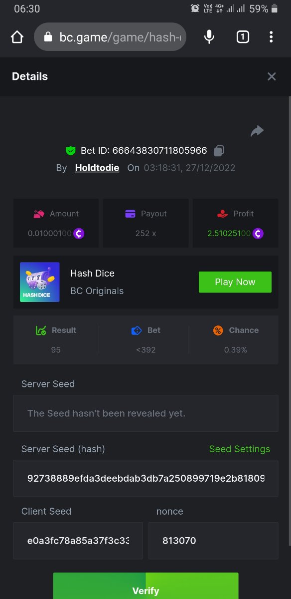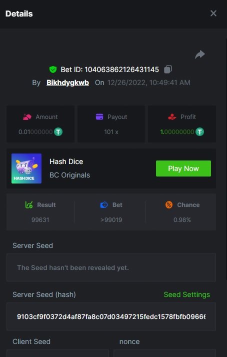 Black Tiger Posted December 26, 2022 Share Posted December 26, 2022 Read Carefully Before Start To Hunt Daily Challenges #111 : Hash DiceHunt :Win the highest pay outMin Payout requirement 100xMin Level 4️Duration Starting : Now End time : 23.59 UTC Time How to Join? Make screenshot + paste your bet link + UID or Profile link Mini bet amount - 0.01$ Any coin allowedReward Prizes 1st Place....... $7 BCD2nd Place..... $5 BCD3rd Place...... $4 BCD 🎖4th Place......$3 BCD5th - 10th Place......$1 BCD 🏵 Winners will be announcing next day after Roll Point 1 Link to comment Share on other sites More sharing options...