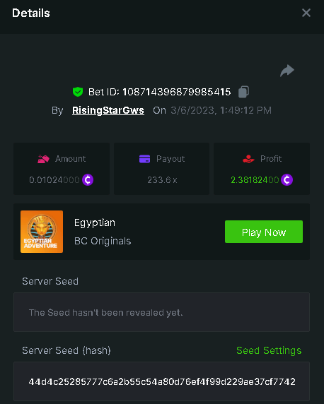 Maksypro Posted March 6, 2023 Share Posted March 6, 2023 (edited) Read Carefully Before Start To Hunt Daily Challenges #166 EGYPTIAN ADVENTURE Hunt : Win the highest pay out Min Payout requirement 65x Min Level 4 ️Duration Starting : Now End time : 23.59 UTC Time How to Join? Make screenshot + paste your bet link + UID or Profile link Mini bet amount - 0.01$ Any coin allowed Reward Prizes 1st Place.....$7 BCD 2nd Place.....$5 BCD 3rd Place.....$4 BCD 4th Place.....$3 BCD 5th Place.....$2 BCD 🏵 Winners will be announcing next day after Roll Point! Edited March 6, 2023 by Maksypro Link to comment Share on other sites More sharing options...
