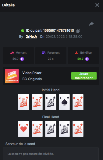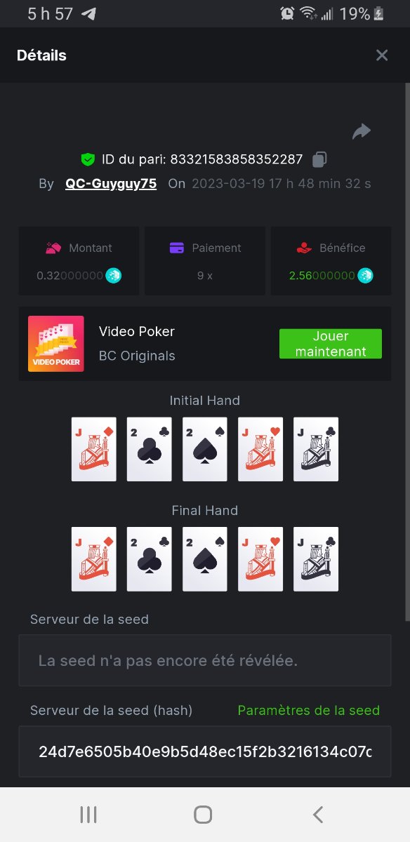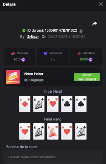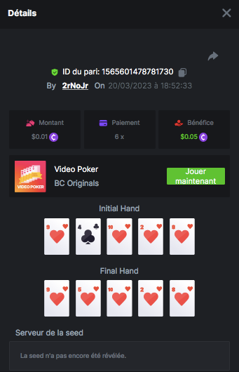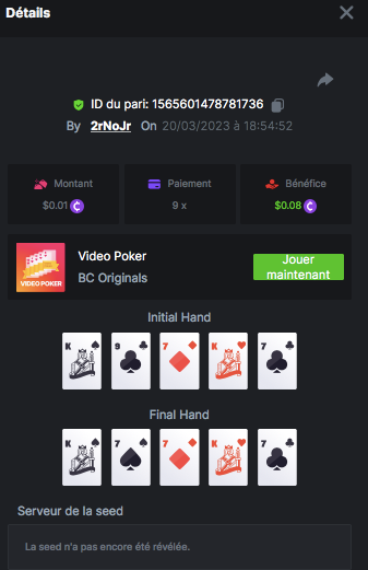 Member AkSyEn03 Posted March 19, 2023 Member Share Posted March 19, 2023 (edited) 🏵ÉVÉNEMENTS DU WEEK-END🏵J'autorise tous les participants FR !!DÉFI Heure de début : 19/03/2023 à 20h00. Heure de fin : 20h le 20/03/2023 week defi n'est ce pas merveilleux ^^ Quel est le défi ? Jeu : VIDEO POKERAtteindre le plus HAUT MUTLIPLICATEUR et une cumulation de x dans le jeu VIDEO POKER Minimum pour la qualification est de 3 Multi SI égalité sur un multiplicateur , le filtre sélectionnera en 2éme la somme et sera prise en compte .VIP minimal > Il n'y a pas de niveau VIP minimum.Pari minimum : 0.0003$ Attention JB non pris en compte Récompenses14$8$4$4eme place à 7 -ème place 2$ sans respect des conditions aucun gains ne sera remis !Accédez au jeu pour choisir votre ID de pari, cliquez sur l'icône Partager (↷) puis sur Copier le lien Dans le même message, téléchargez une capture d'écran de votre gain en cliquant sur l'ID du jeu et En mode USD ON1. N'utilisez pas plusieurs comptes 2. Les paris soumis avant ou après la date et l'heure limite ne seront pas acceptés 4. tout manquement au conditions de bonus, vera son paris annulé. alors lisez bien avant de commencer et BC Game vous souhaite des moments heureux et profitablesBonne chance, que le meilleurs gagne !! Edited March 19, 2023 by Bc-AksYeN-33 2 Link to comment Share on other sites More sharing options...