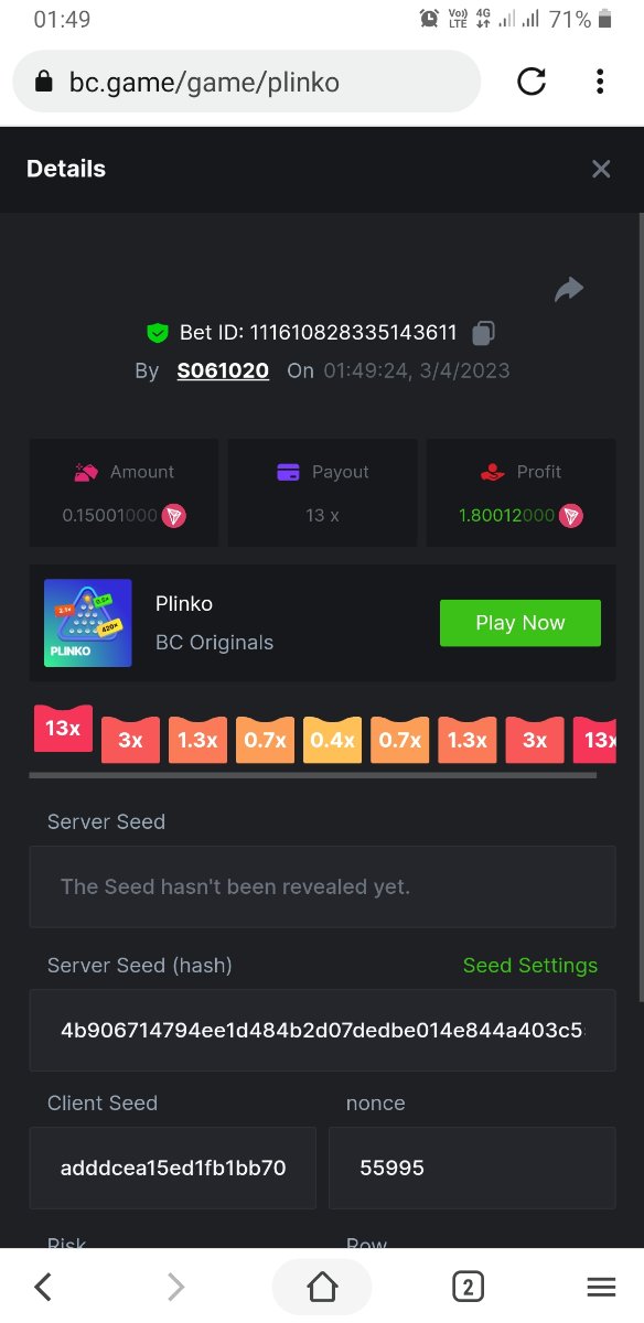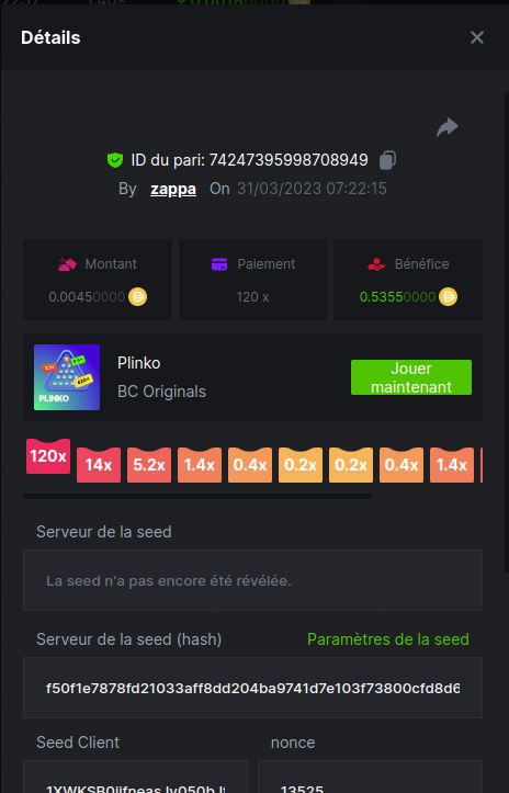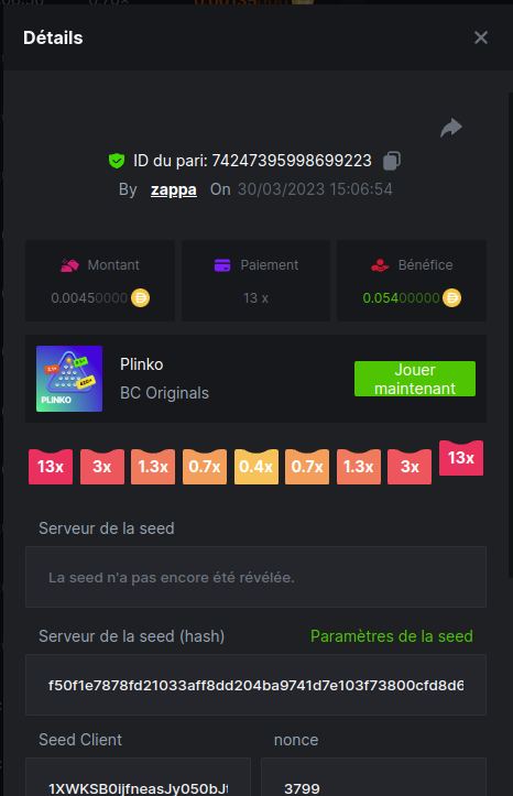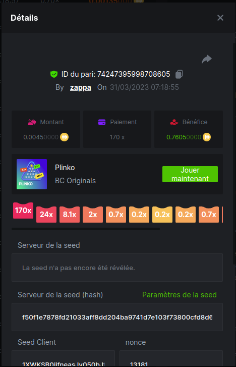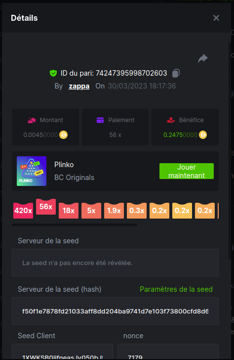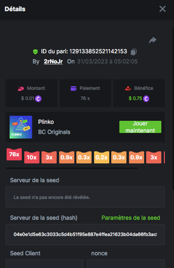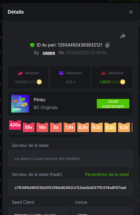 Member AkSyEn03 Posted March 30, 2023 Member Share Posted March 30, 2023 Défi Prestige Plinko de 48$ Début : 30 MARS à 22h45 Fin 4 AVRIL 15h30 Hé, hé, les VIP ! Regardez vers le ciel, il pleut des météores, et ils se rapprochent rapidement ! Frappez le plus grand nombre de paiements uniques sur Plinko pour vous sauver et rejoignez BCRocket pour explorer une nouvelle planète inconnue. La cagnotte est de 48 $ Sois prêt! Continuez à lire plus d'informations ci-dessous pour découvrir les règles de ce défi et comment vous pouvez remporter le premier prix ! Quel est le Défi ? Complétez autant des 17 paiements suivants sur Plinko. Doit être un multiplicateur exact. | 11x | 13x | 22x | 29x | 33x | 37x | 43x | 56x | 76x | 83x | 110x | 120x | 170x | 260x | 420x | 620x | 1000x | Chaque paiement que vous touchez ci-dessus compte pour 1 point (maximum 1 point pour chaque paiement). S'il y a égalité, le joueur avec le montant de pari moyen le plus élevé (en USD) sera le gagnant. S'il y a égalité, le joueur avec le montant de pari moyen le plus élevé (en USD) sera le gagnant. S'il y a égalité dans le montant et le paiement, celui qui a publié ou modifié sa publication en premier sera considéré dans le classement. Comment entrer : Il n'y a pas de niveau VIP minimum Au moins 3 paiements pour vous qualifier Taille de mise minimale 0,0045 USD Pièces éligibles : Toutes les crypto-monnaies sont éligibles (sauf JB) price is 1st.............$15 2nd...........$10 3rd...........$5 4th-13th...$2 Rejoignez et faites un basebet d'au moins 0,15, vous pouvez rejoindre 2 événements en même temps - événement régional : Conditions générales : Veuillez combiner tous vos résultats dans un SEUL message. Modifiez votre publication existante pour des résultats supplémentaires, ne créez pas de nouvelle publication. Chaque inscription éligible doit avoir l'URL du bordereau de pari. Si vous ne l'incluez pas, la participation à l'événement sera disqualifiée. L'image du bulletin de pari n'est pas obligatoire. Les paris doivent être publiés dans les 24 heures suivant le placement du pari afin que les choses restent équitables pour tout le monde. Les paris doivent être faits pendant la fenêtre de temps spécifiée ci-dessus. Ce fil se verrouillera automatiquement lorsque la période de temps sera terminée. Une (1) participation par foyer. Toute personne surprise en train de tenter de gagner plusieurs prix sera disqualifiée de ce défi ainsi que de tous les défis futurs. Le non-respect des instructions entraînera la nullité de votre soumission. En participant à ce défi, vous reconnaissez que BC.Game a la décision finale sur les résultats et le placement. Les paiements seront effectués dans les 72 heures suivant la fin du défi, soyez patient, nous vous promettons que nous n'avons pas oublié. Nous vérifions et revérifions pour nous assurer que les gagnants légitimes reçoivent leur prix. Les prix seront payés en BCD. BONNE CHANCE À TOUS Link to comment Share on other sites More sharing options...