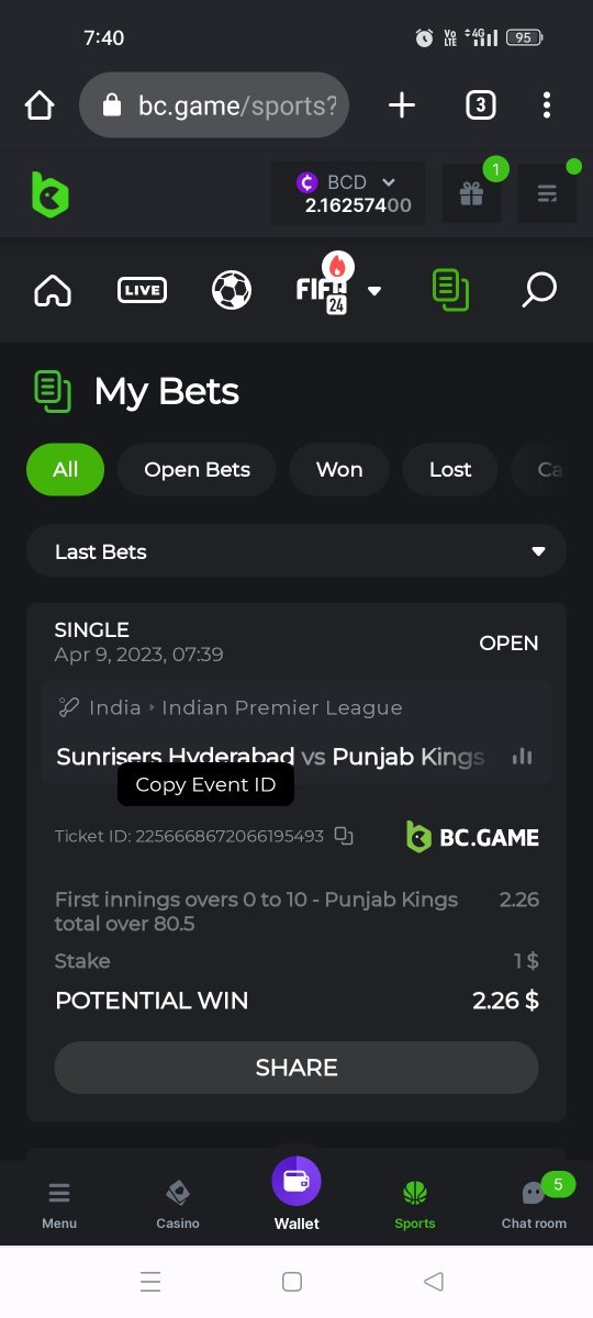 Moderator LuCifer_BcGAmE Posted April 12, 2023 Author Moderator Share Posted April 12, 2023 Thanks for taking part of our First IPL forum EVENTWinner List of IPL#1 magicckk (odds=8.20) Reward ; 50 BCD MasterO_O (odds=8.13) Reward : 30 BCD U-day (odds = 7.63) Reward : 20 BCD Ravi Thapa (odds=6.50) Reward : 10 BCD Rakorbakc (6.19) Reward : 05 BCD All winners get you Reward with in 48 hrs Through Forum pm. Link to comment Share on other sites More sharing options...