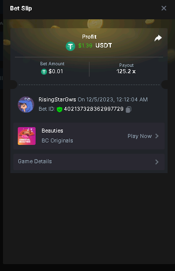 2nd place . . . .  5$ BCD  - RisingStarGws - 125.2x  1.39