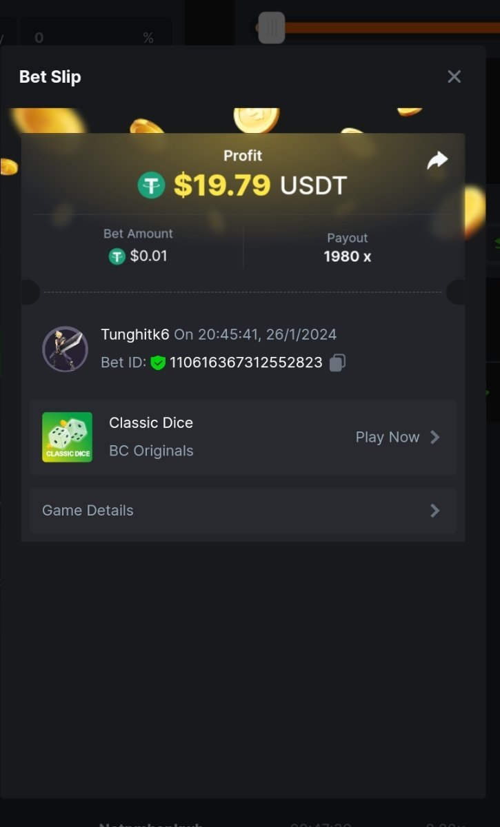 Moderator Giandreas Posted January 27, 2024 Moderator Share Posted January 27, 2024 Read Carefully Before Start To Hunt Forum Daily Challenges #492Hunt : Classic dice Win the highest pay out Min Payout : x20 Min Level 10 ️Duration Starting : Now End time : 23.59 UTC Time How to Join? Make screenshot + paste your bet link + UID or Profile link Any coin, with min bet 0.01 USD is allowed (jb/bb/bcl not allowed) Reward Prizes 1st Place.....$7 BCD 2nd Place.....$5 BCD 3rd Place.....$4 BCD 4th Place.....$3 BCD 5th Place.....$2 BCD 🏵 Winners will be announcing next day after Roll Point! Link to comment Share on other sites More sharing options...