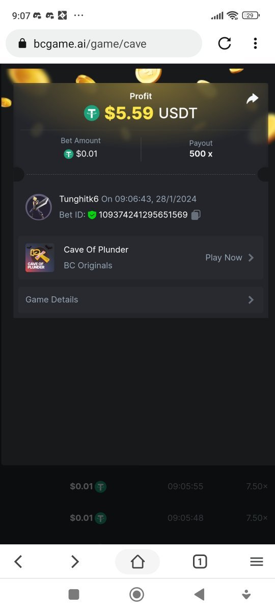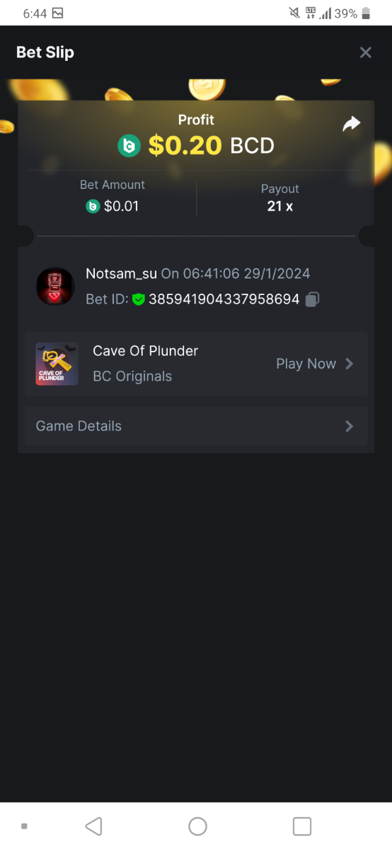 Moderator Giandreas Posted January 28, 2024 Moderator Share Posted January 28, 2024 Read Carefully Before Start To Hunt Forum Daily Challenges #493Hunt : Cave of Plunder Win the highest pay out Min Payout : x17 Min Level 10 ️Duration Starting : Now End time : 23.59 UTC Time How to Join? Make screenshot + paste your bet link + UID or Profile link Any coin, with min bet 0.01 USD is allowed (jb/bb/bcl not allowed) Reward Prizes 1st Place.....$7 BCD 2nd Place.....$5 BCD 3rd Place.....$4 BCD 4th Place.....$3 BCD 5th Place.....$2 BCD 🏵 Winners will be announcing next day after Roll Point! Link to comment Share on other sites More sharing options...